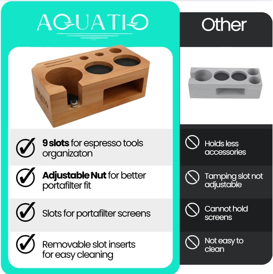 - The Ultimate Coffee Lover’s Gift – Whether for yourself or a fellow coffee enthusiast, this beautifully crafted espresso tamping station by AquatiQ makes a stylish and practical addition to any home or professional barista setup.