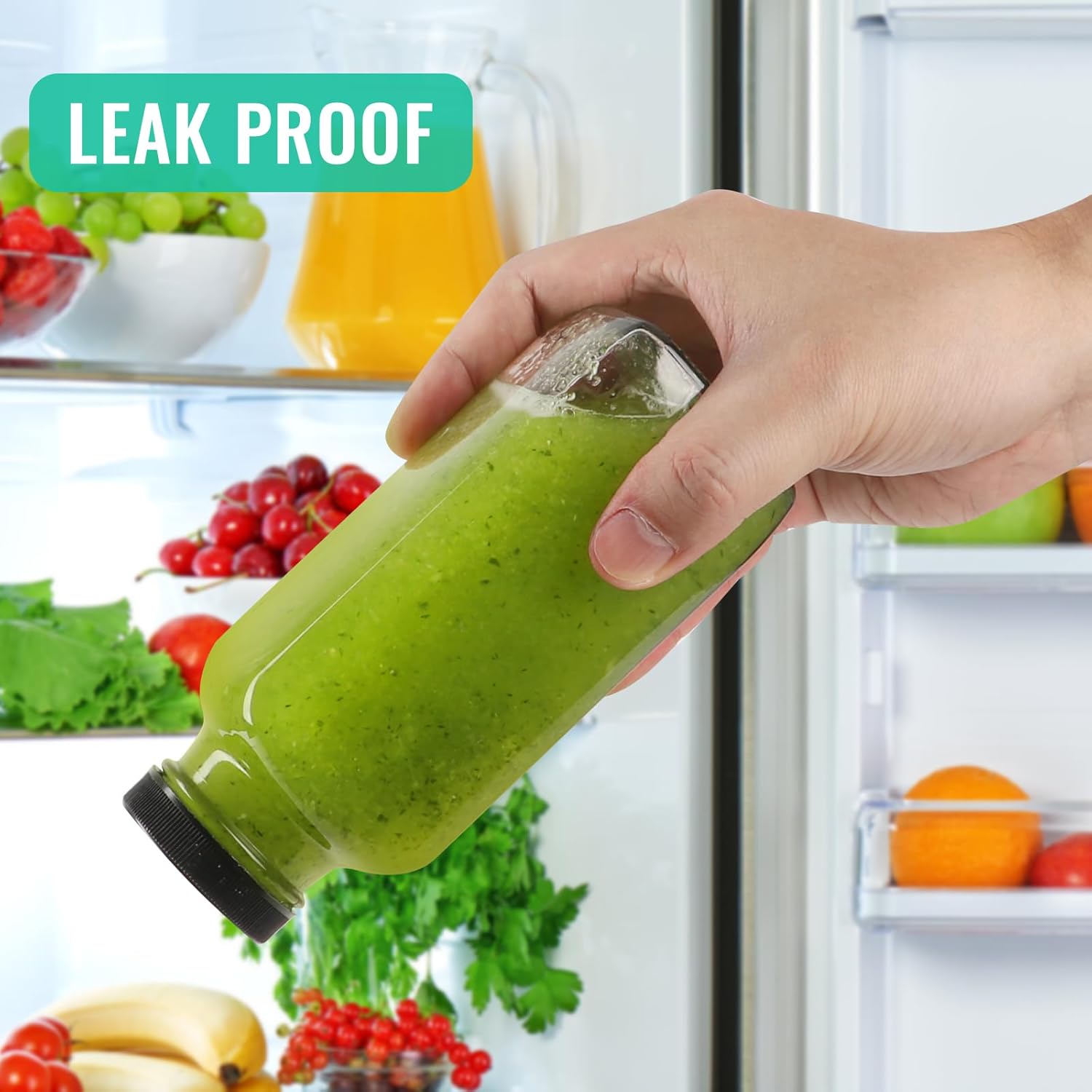 12 oz Glass Juice Bottles with Lids 6 Pack,Reusable Glass Drink Bottles,350ml Water Drinking Jars for Milk,Juicing,Kombucha,Ginger,Beverage Glassware,Juice Drinking Jars