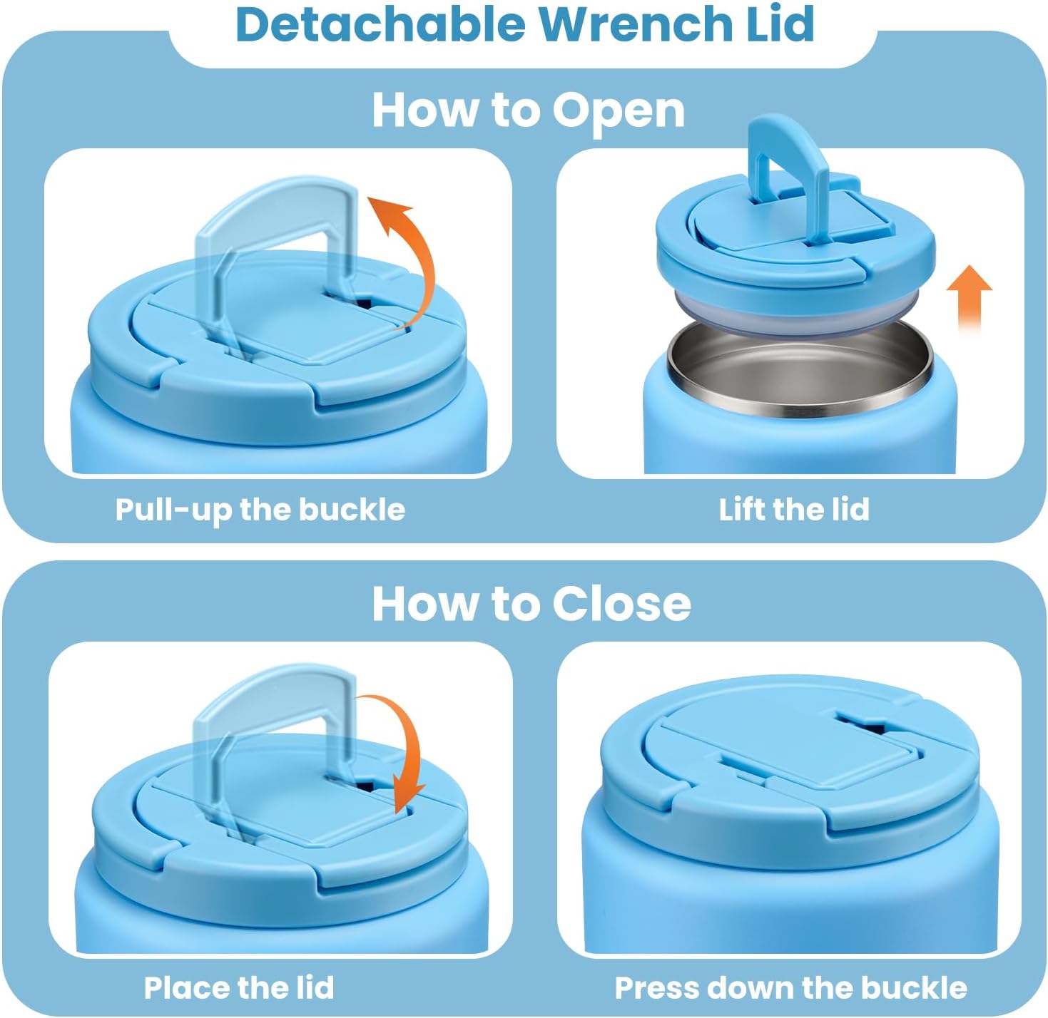 - New Buckle of Lid: The food containers feature a press-seal construction, allowing you to simply pull the handle upwards to 90° to open the lid/ 90° downward closure. This design is maintaining vacuum no need to rotate the lid open . Additionally, the container comes equipped with a carrying handle, making it convenient for your child to carry it. Whether at school, an outdoor outing, or a family gathering, this user-friendly design empowers children to confidently enjoy their delicious meals.