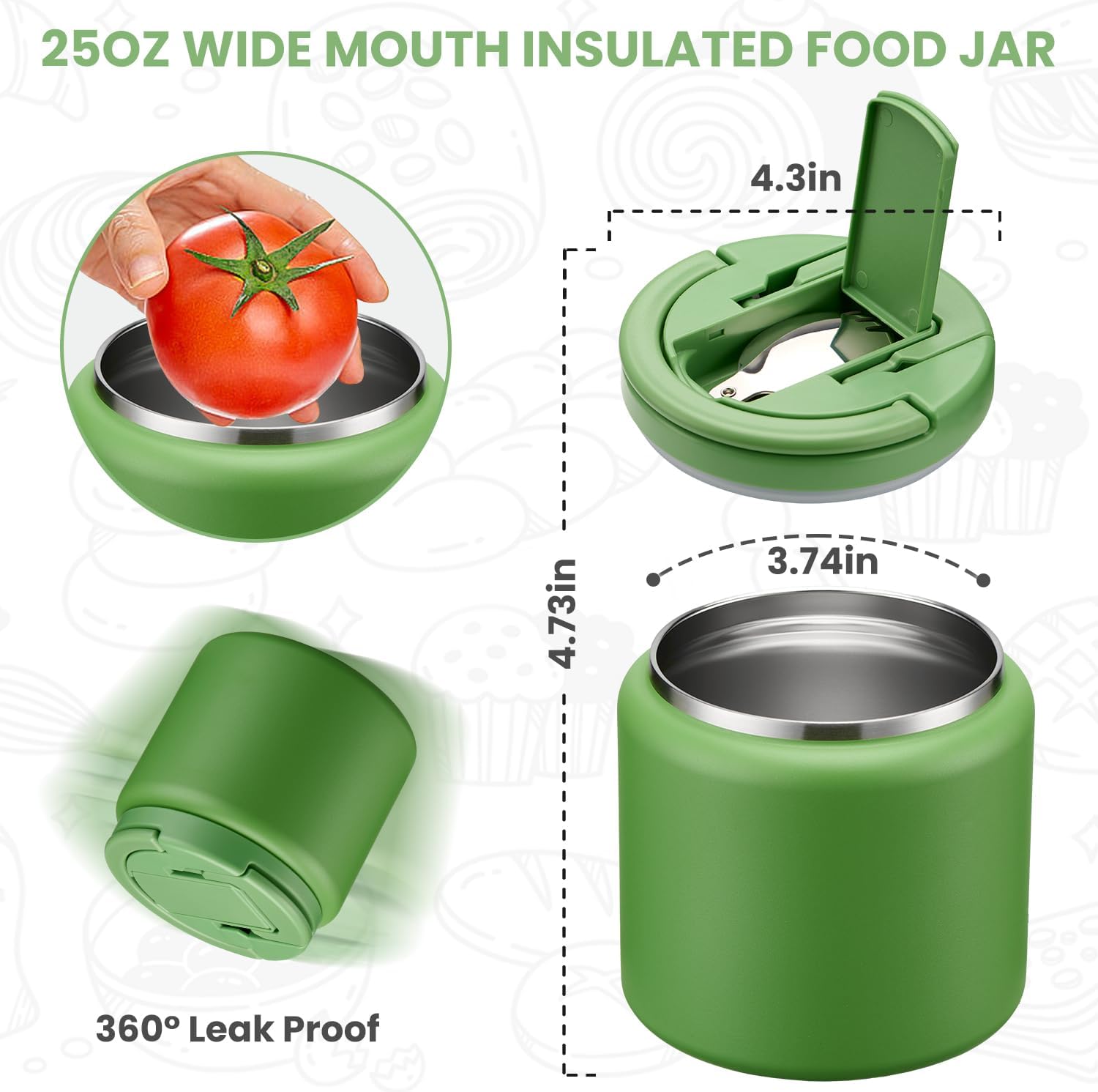 Soup Thermo for Hot Food Kids 25.5oz Lunch Containers with Buckle Lid Wide Mouth Hot Food Jar Vacuum Insulated Stainless Steel Bento Box Leakproof with Spoon(Green)