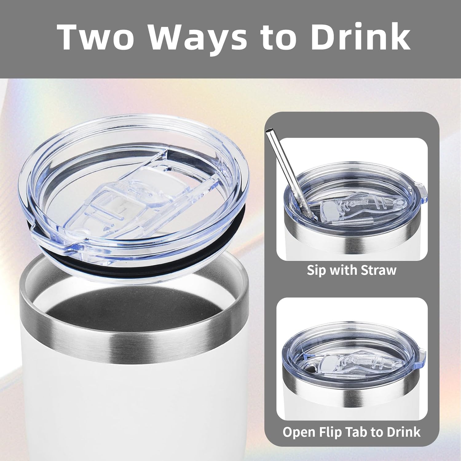 MEZMUT 20oz Coffee Tumbler with Lid and Straw Double Wall Vacuum Insulated Cup Stainless Steel Travel Mugs Insulated for Hot Cold Leakproof Powder Coated Tumbler for Indoor Outdoor(White, 4)
