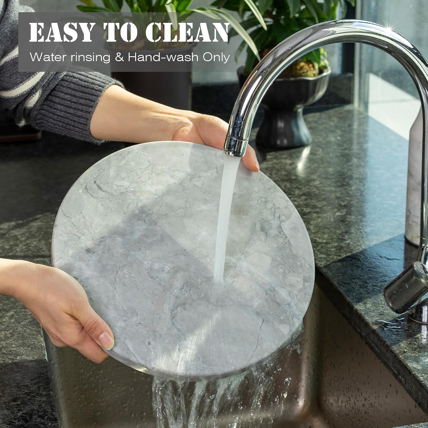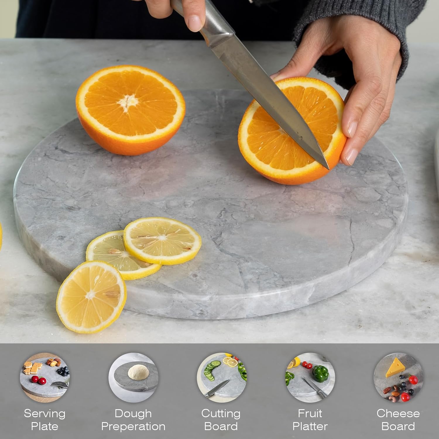 Koville Round Marble Pastry Cutting Board - 11" Gray Marble Cheese Board for Baking, Charcuterie, Pastry, Trivet - Non-Stick Heat Resistant Stone Cutting Boards for Kitchen