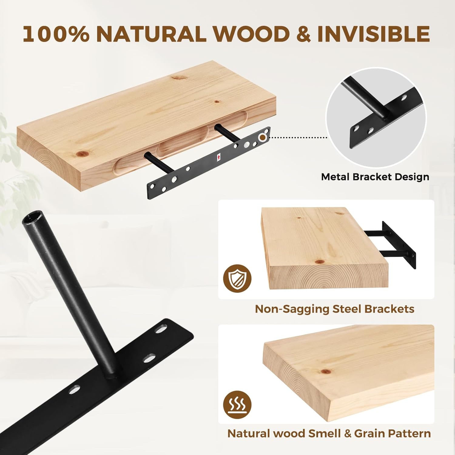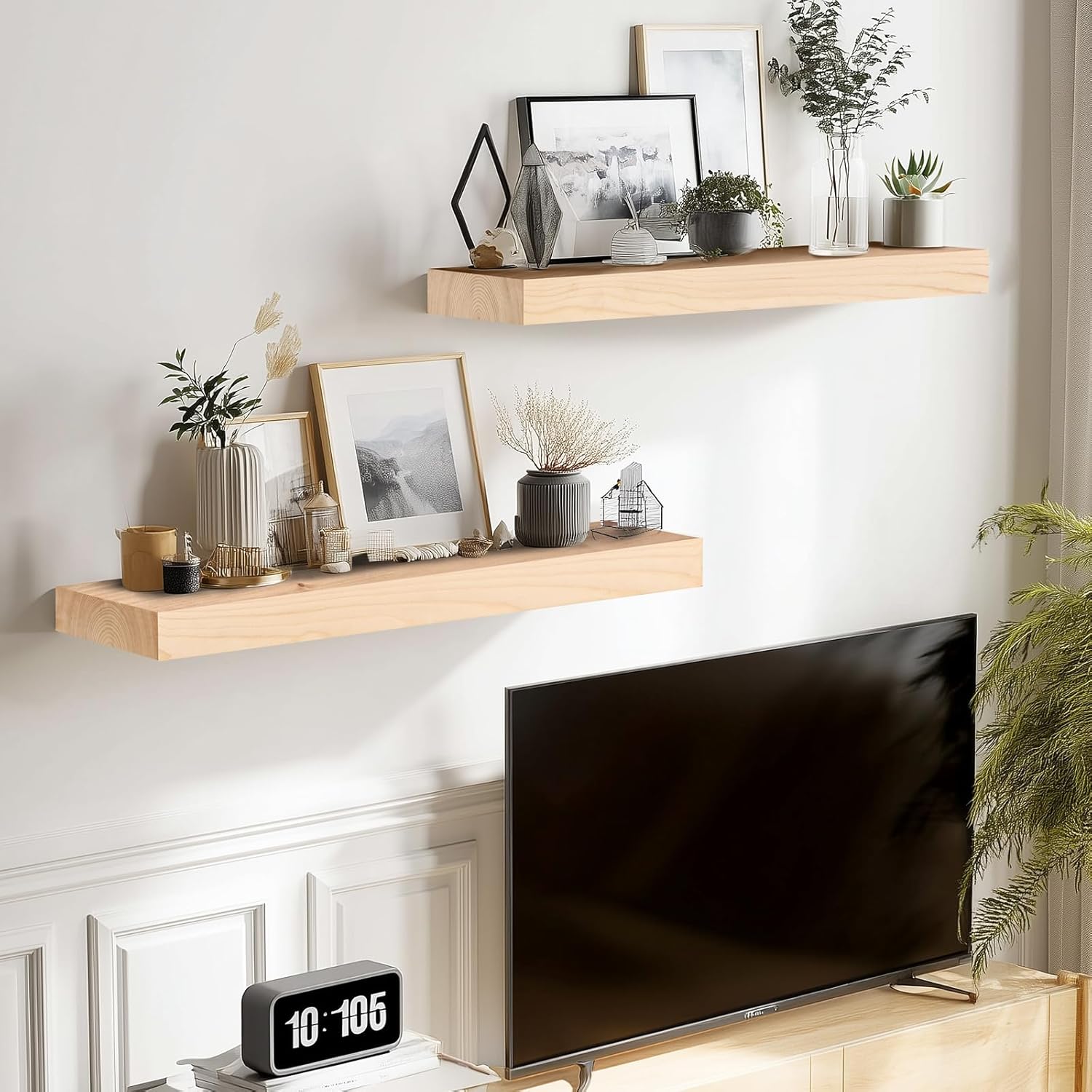 - Extra-Wide & Strong Build: With a wider 8-inch depth and solid wood thickness, this wall-mounted floating shelf holds more with ease—no bending or sagging under weight