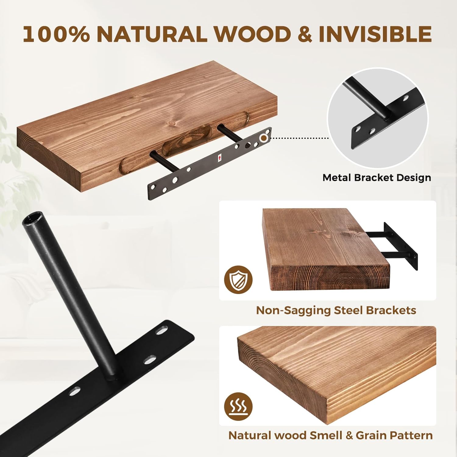 17x8x1.6 inch Floating Shelves Set of 2 – Solid Wood Rustic Brown Wall Mounted Shelf for Kitchen, Bathroom, Living Room