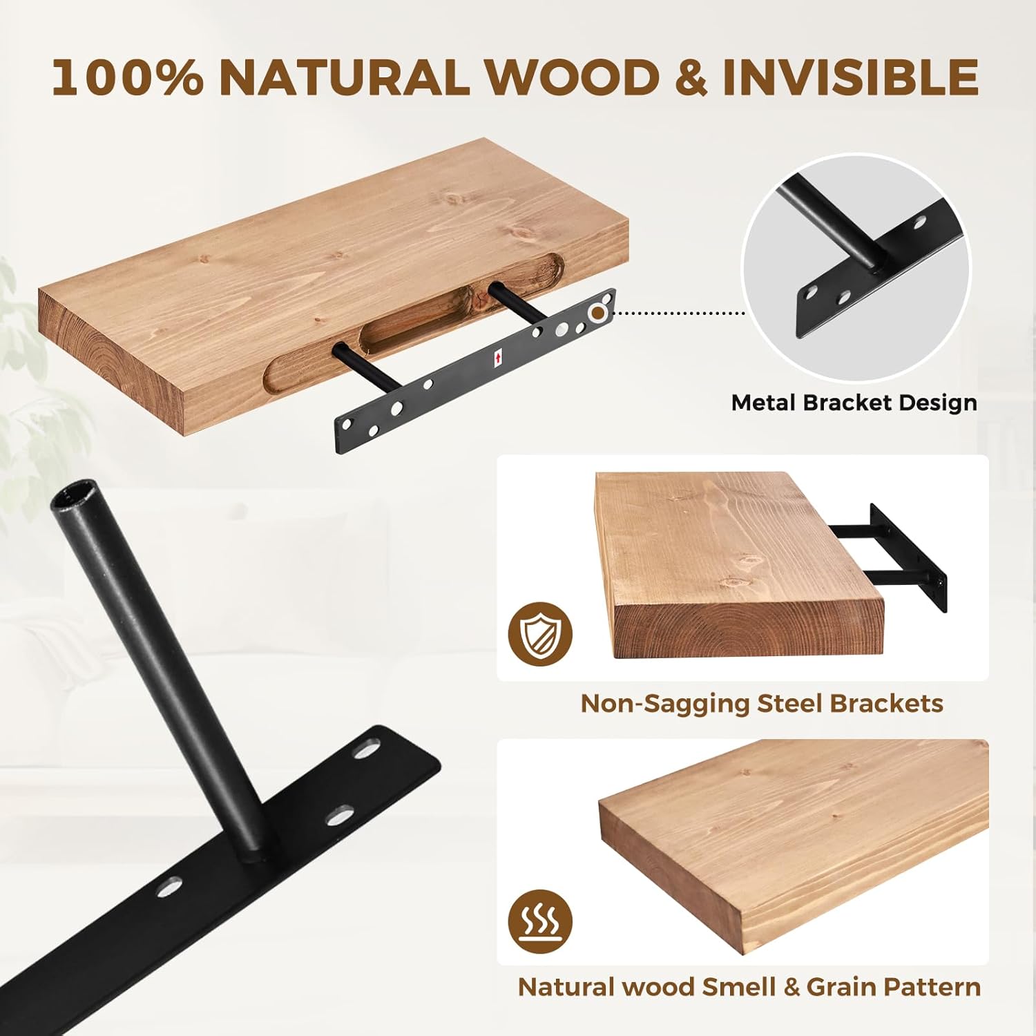 - Premium Solid Wood:Crafted from solid wood, this floating wall shelf features a visible natural grain, offering charm, durability, and a rustic-modern aesthetic
