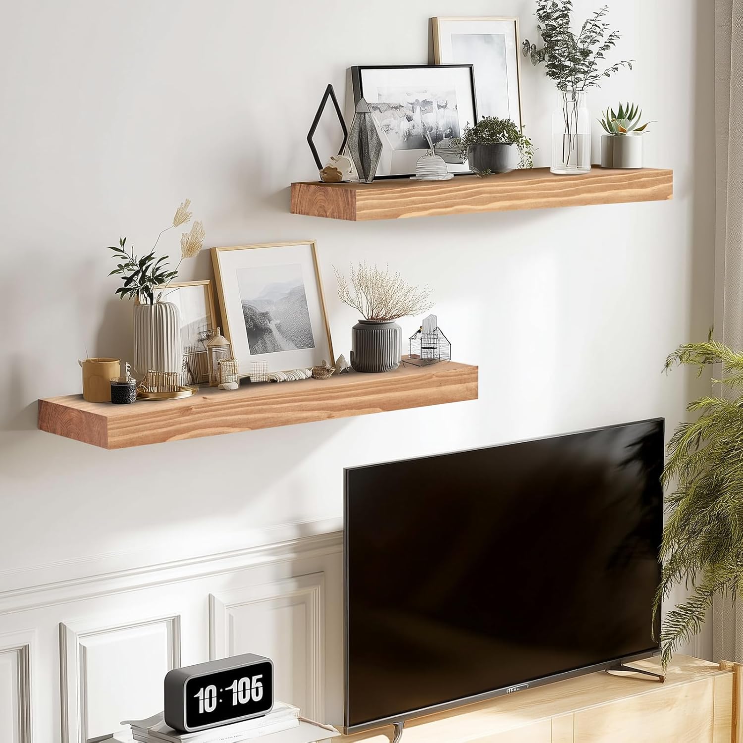 - Extra-Wide & Strong Build: With a wider 8-inch depth and solid wood thickness, this wall-mounted floating shelf holds more with ease—no bending or sagging under weight