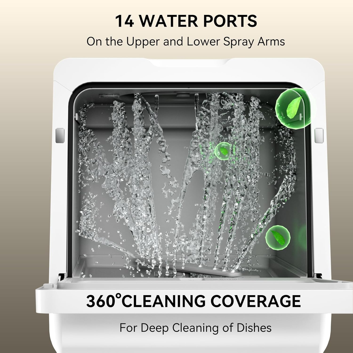 - 【360° All-AROUND CLEANING】The spray arms feature 14 water jets that spray from both the top and bottom, achieving a 360° cleaning coverage. This ensures a meticulous rinse, imparting a gleaming, pristine finish to your dishes.