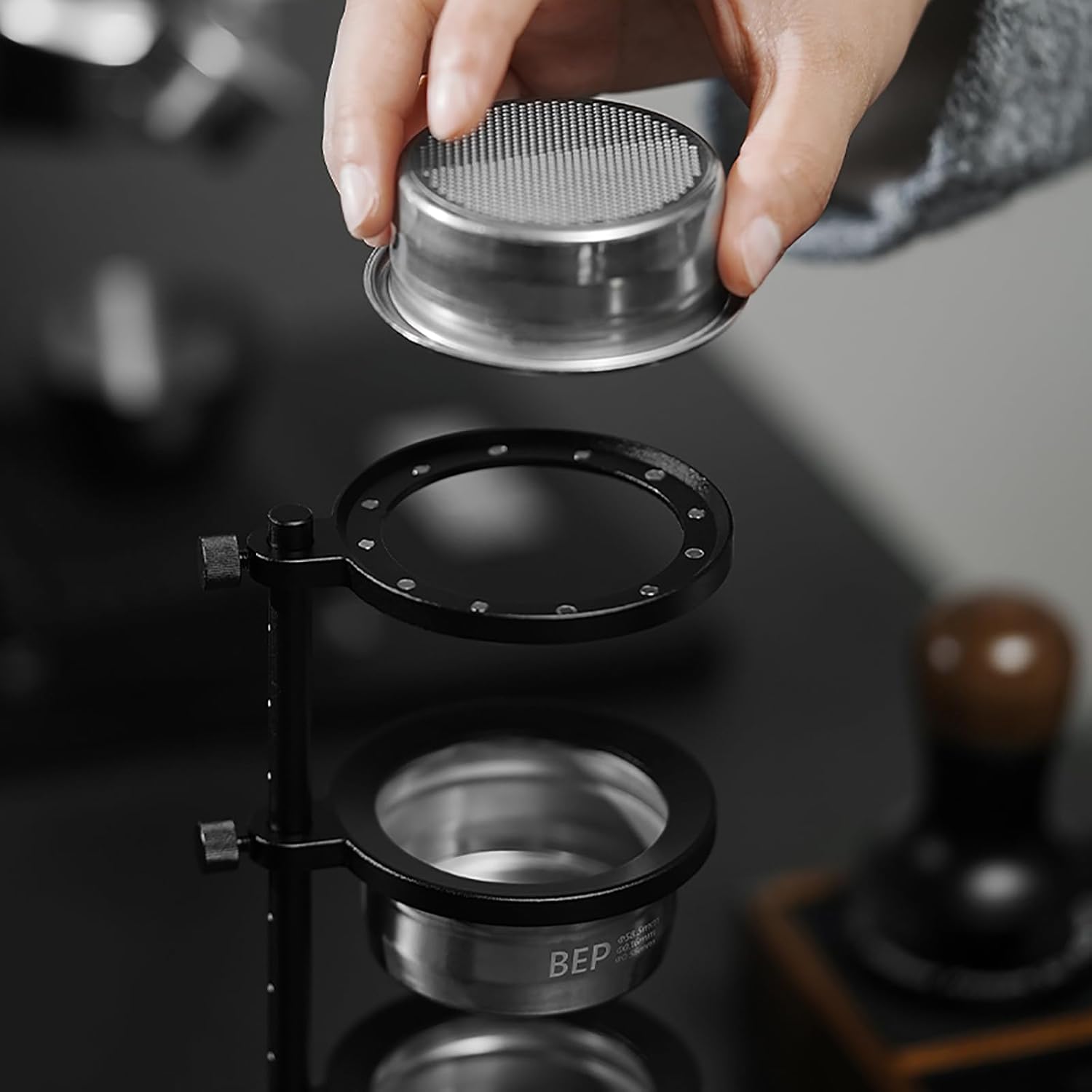 MHW-3BOMBER Magnetic Portafilter Basket Storage Stand, Espresso Filter Basket Holder Rack for 51/53/54/58mm Coffee Filter, Removable Espresso Display Bracket SR6106-OS
