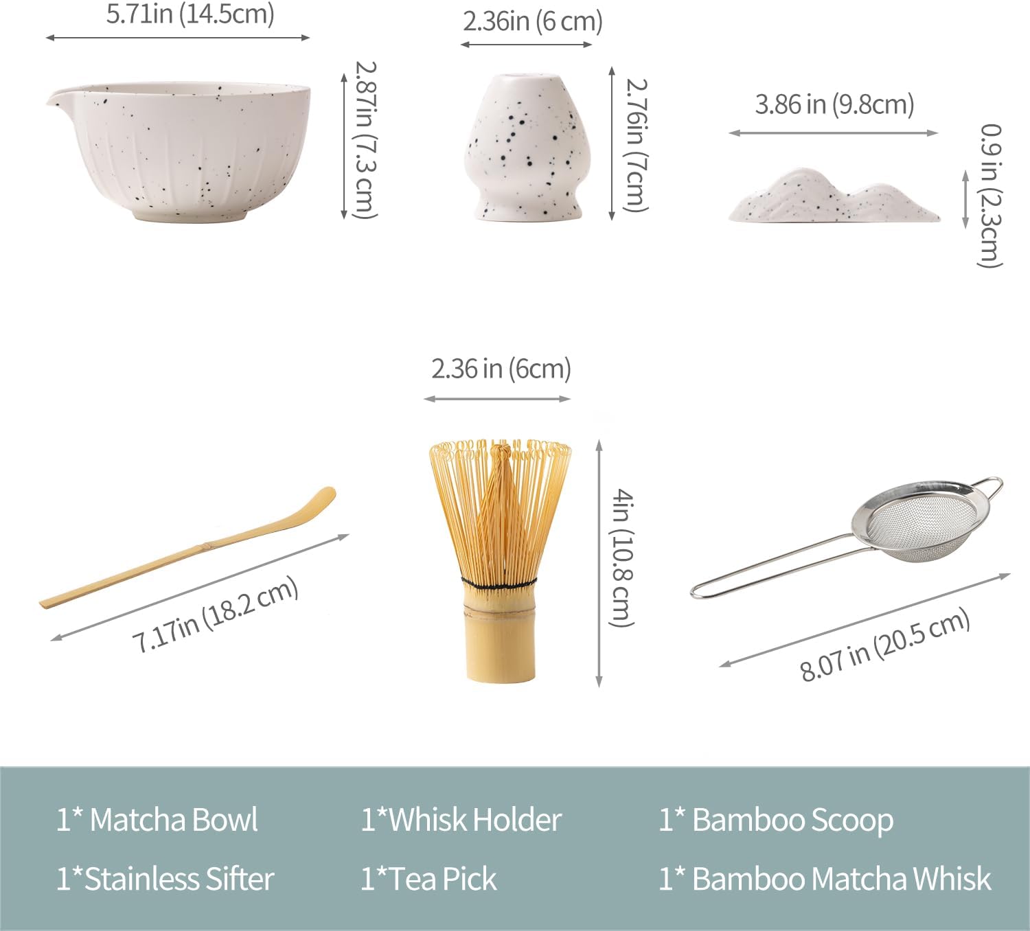 - 7Piece Matcha Tool Set: It contains a complete set of 7 matcha making tools . Designed after traditional Japanese matcha utensils, this matcha kit helps make authentic Japanese matcha for matcha lovers, taking you through the elegant, traditional way of tea tasting. (This bowl and whisk set includes no green tea powder)