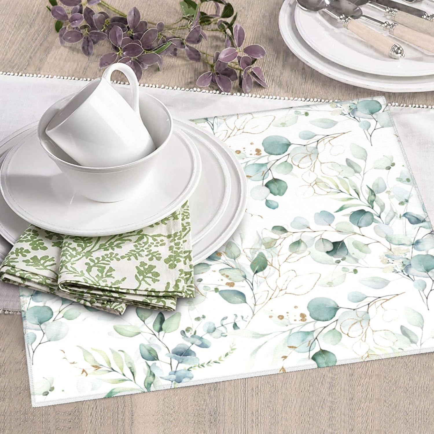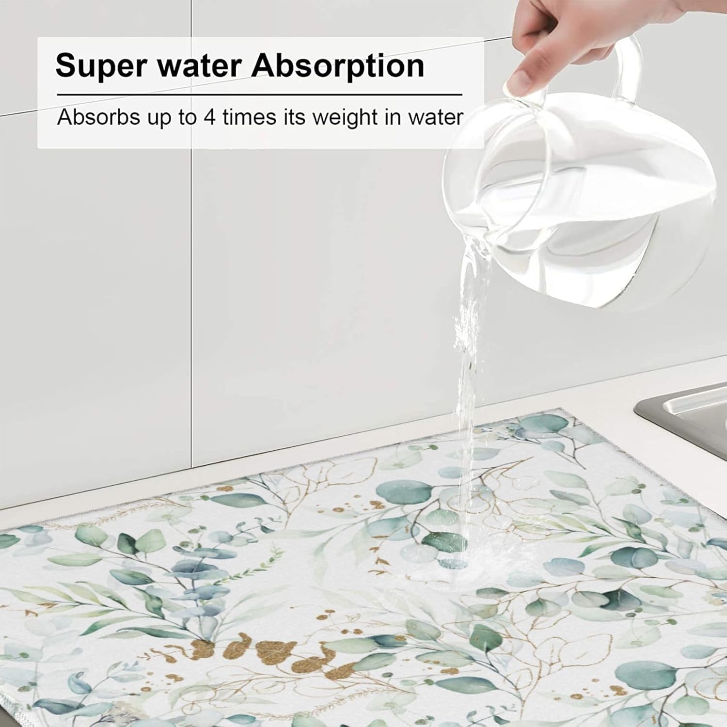 Plants Flowers Dish Drying Mat, Highly Absorbent Microfiber Kitchen Counter Pad Reusable Washable, 16*18"