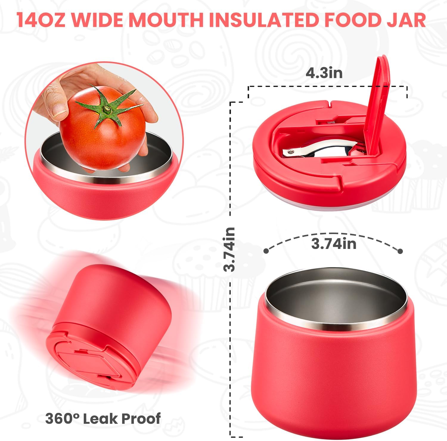 Soup Thermo for Hot Food Kids 14oz Lunch Containers with Buckle Lid Wide Mouth Hot Food Jar Vacuum Insulated Stainless Steel Bento Box Leakproof with Spoon (Red)