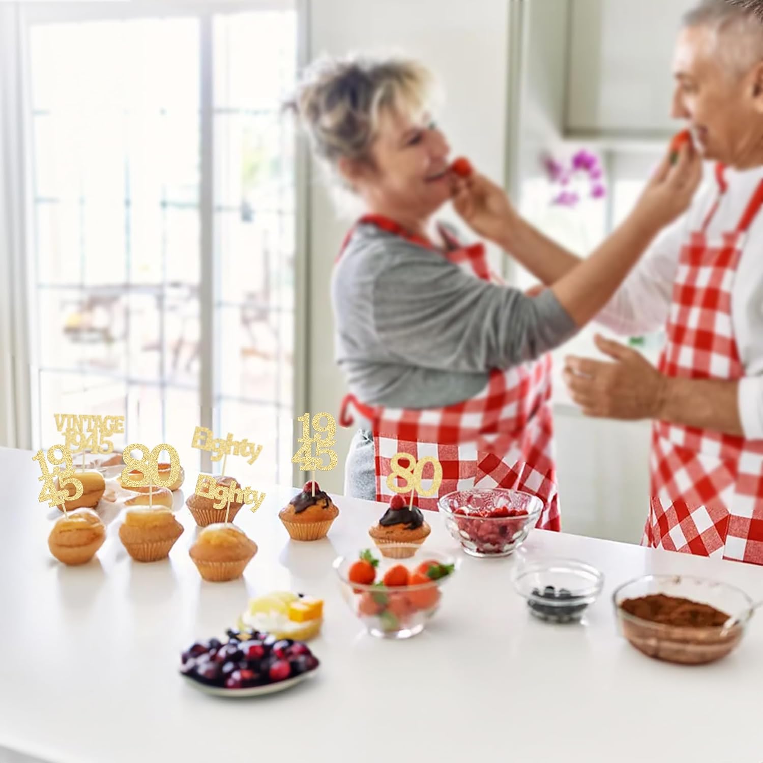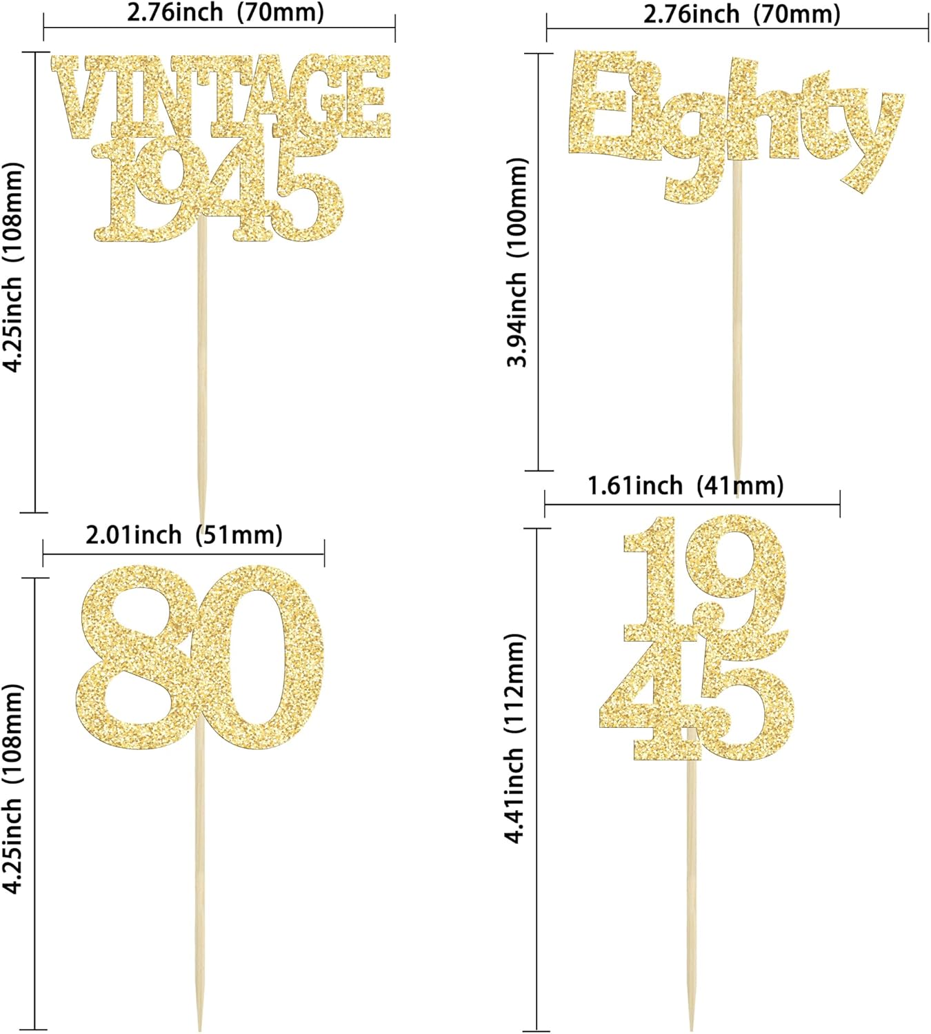 Gyufise 24Pcs 80th Birthday Cupcake Toppers Glitter Cheers to 80 Fabulous Eighty Vintage 1945 Cupcake Picks 80th Birthday Wedding Anniversary Party Cake Decorations Supplies Gold