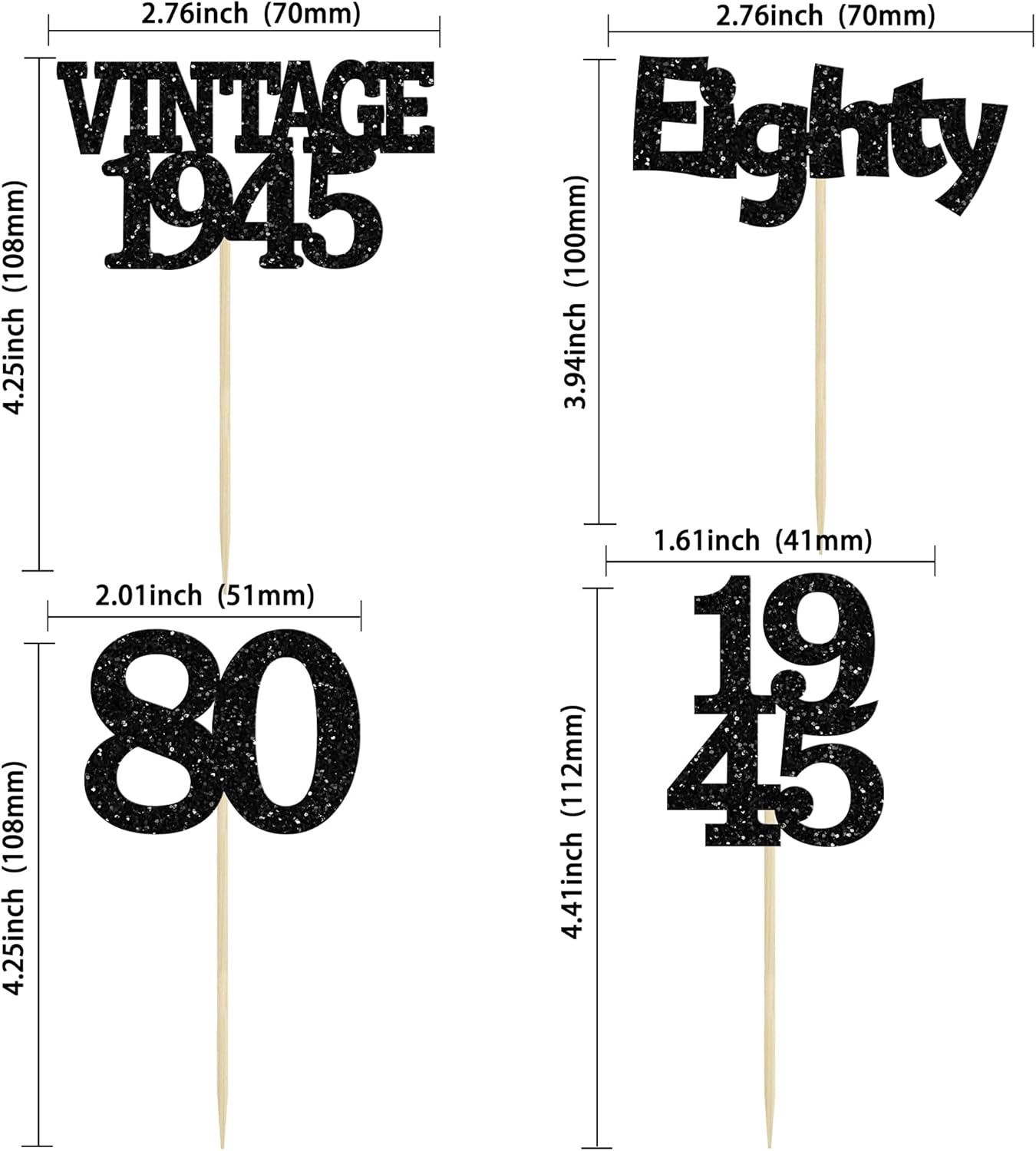 Gyufise 24Pcs Vintage 1945 Cupcake Toppers Glitter Cheers to 80 Fabulous Eighty Cupcake Picks 80th Birthday Wedding Anniversary Party Cake Decorations Supplies Black