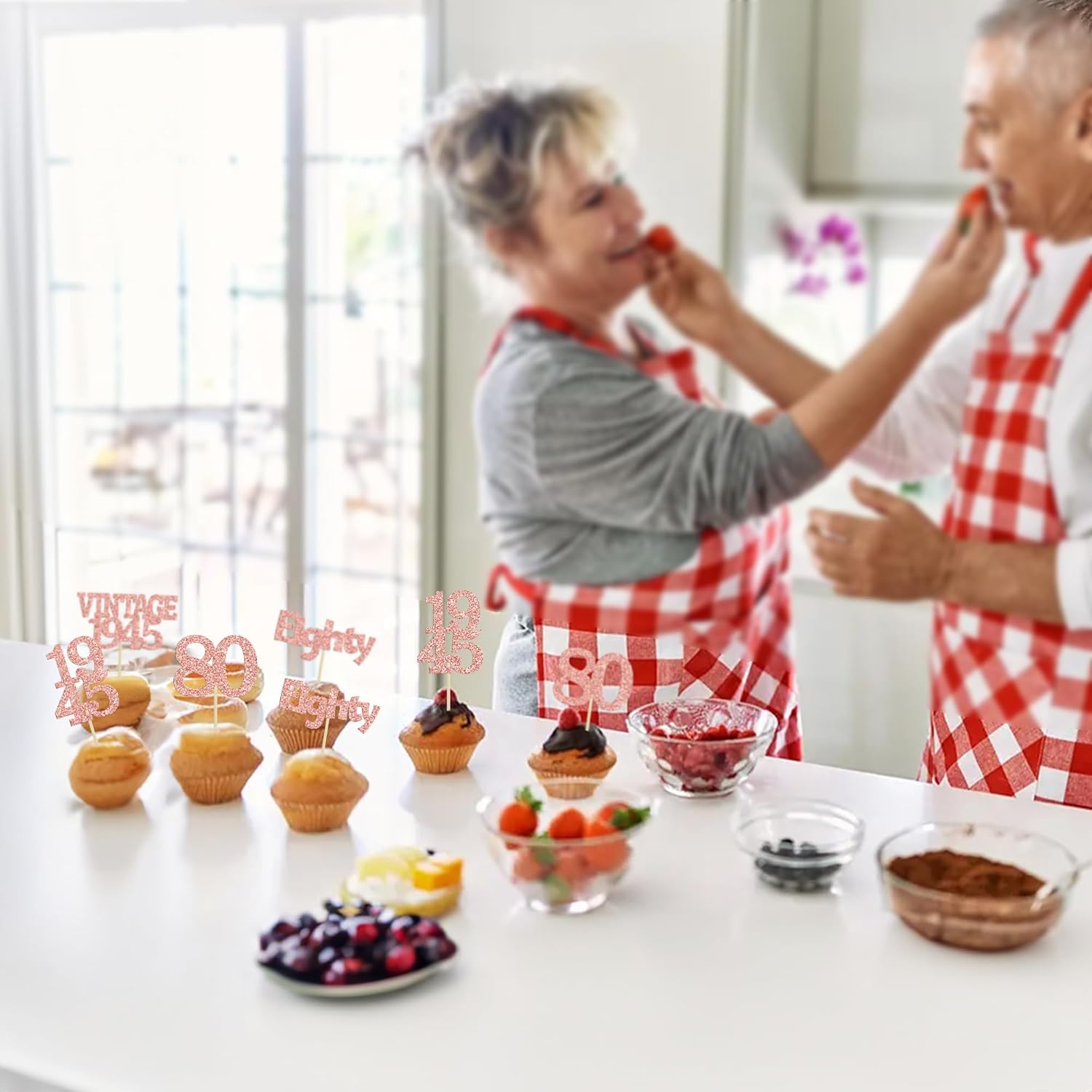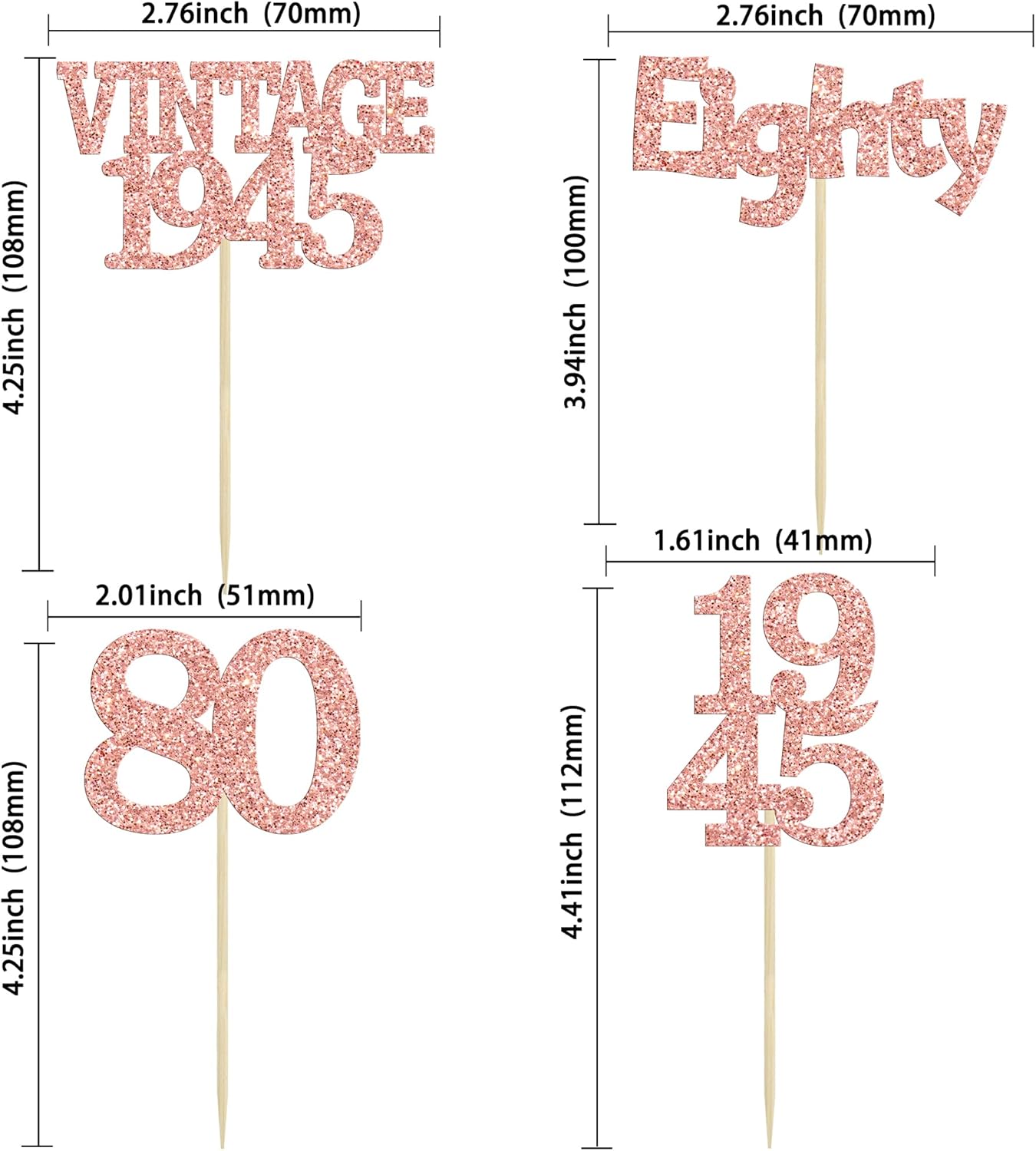Gyufise 24Pcs 80th Birthday Cupcake Toppers Glitter Cheers to 80 Fabulous Eighty Vintage 1945 Cupcake Picks 80th Birthday Wedding Anniversary Party Cake Decorations Supplies Rose Gold