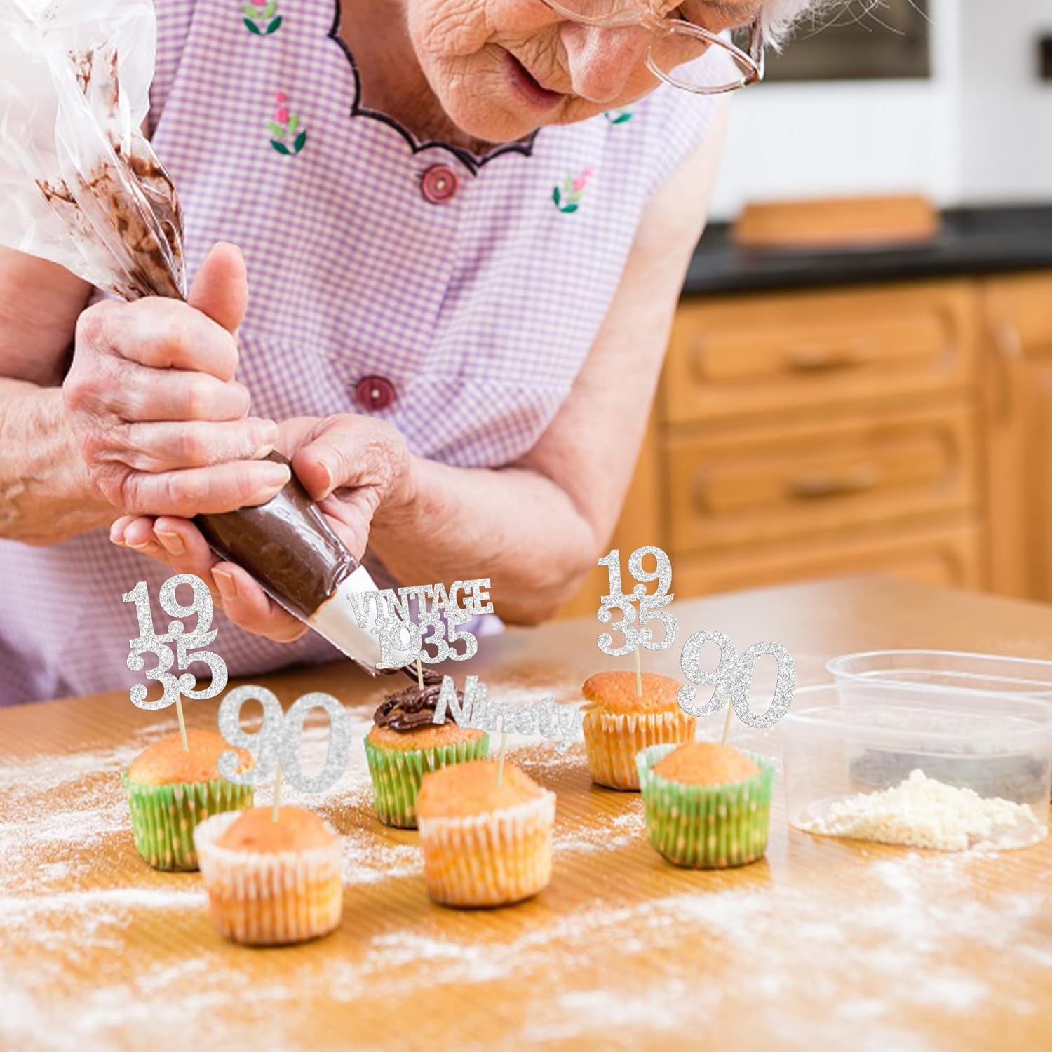 - Package included: 24Pcs 90th Birthday Cupcake Toppers. Comes with assembled, so you can insert into your cake directly, which make your cake more interesting.