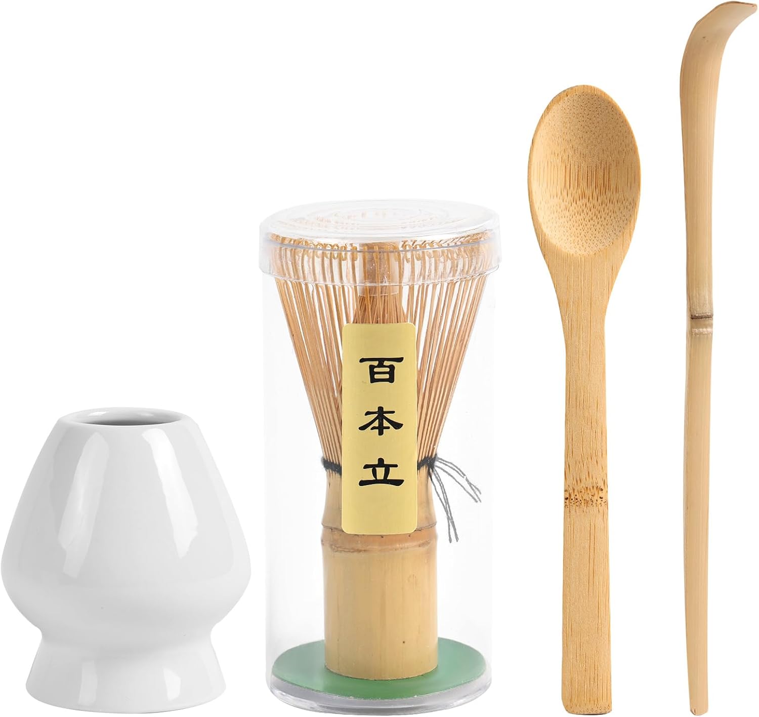 - [Japanese Matcha Whisk Set 4pcs]:This Matcha Set Contains A Handcrafted Bamboo Whisk(Chasen),Wooden Scoop,Matcha Spoon And Ceramic Whisk Holder, Making It An Ideal Matcha Starter Kit For Tea Lovers