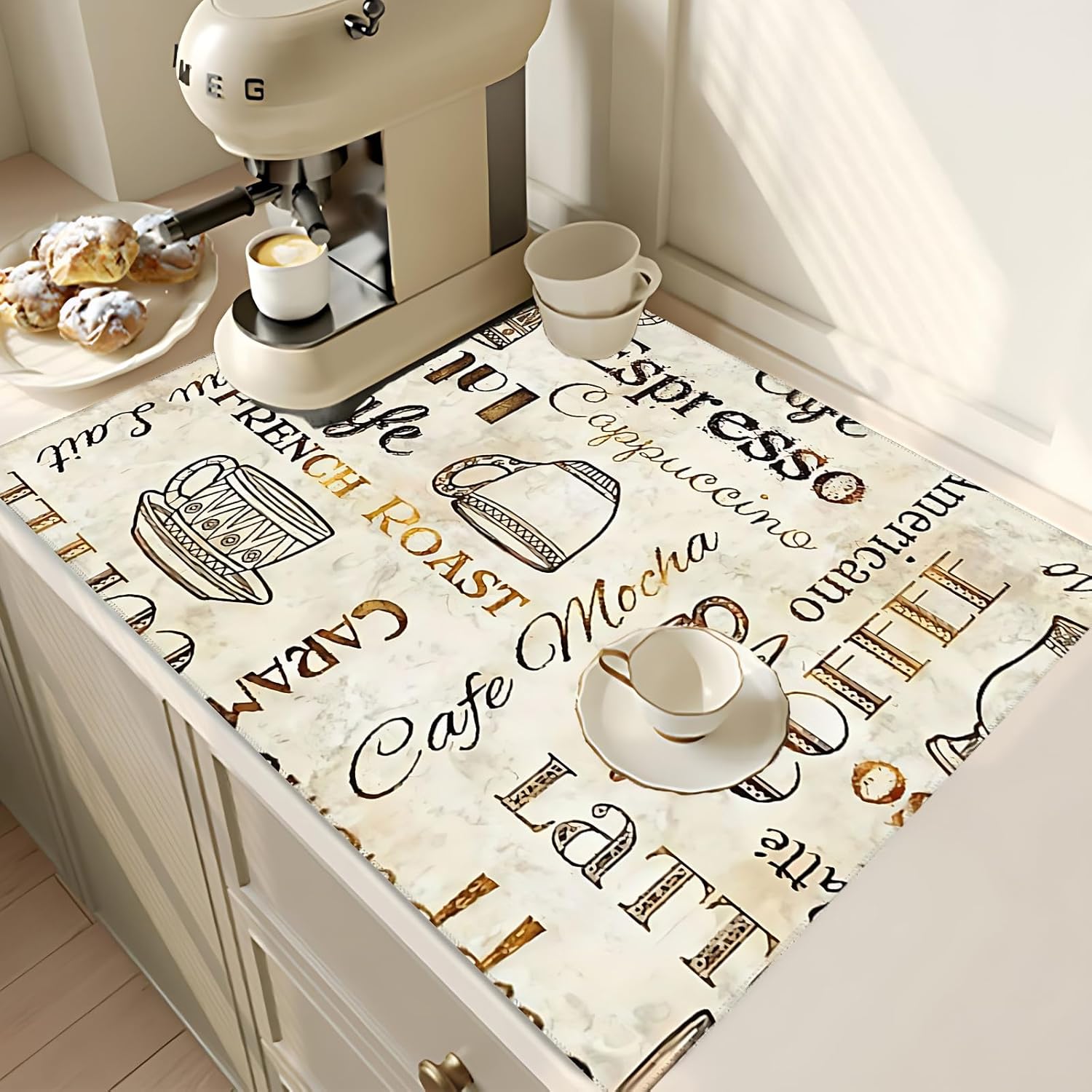 2Pcs Dish Drying Mats Faucet Mats Sets Large Size Coffee Mats Sink Faucet Mat Splash Guard for Kitchen Counter Bathroom Sink Coffee Bar Kitchen Decor (Retro Coffee, 18"x24" 15" x 5.5"Set)