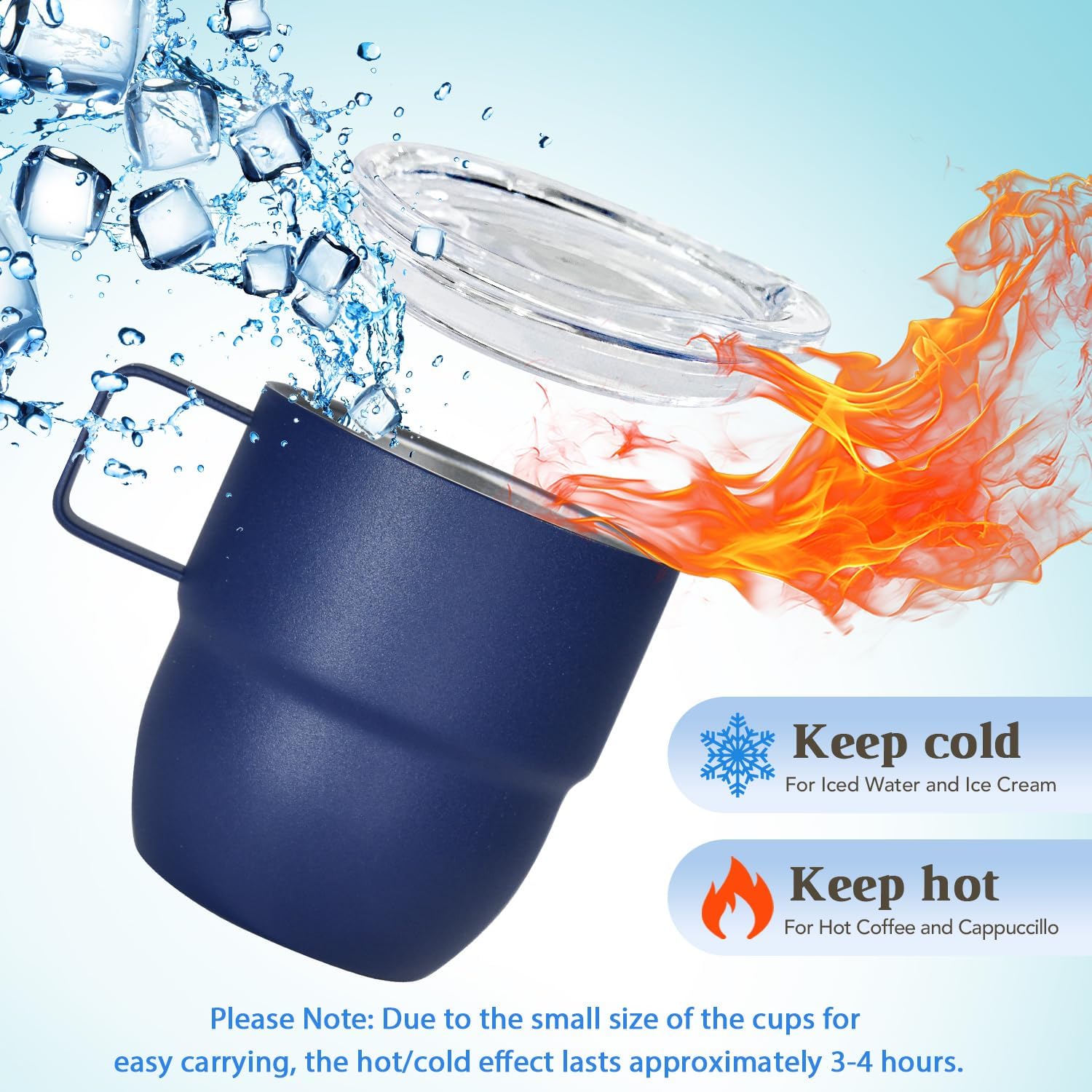 - DOUBLE WALL STAINLESS STEEL: Our espresso cups are made from double wall 18/8 stainless steel, vacuum insulated. Compared to ceramic lining, stainless steel lining are more durable, anti-scald, odourless, not break easily, and better at retaining hot or cold. Whether it's a hot coffee or an iced coke, this small cup is up to the task! (Please Note: Due to the small size of the cups for easy carrying, the hot/cold effect lasts approximately 3-4 hours.)