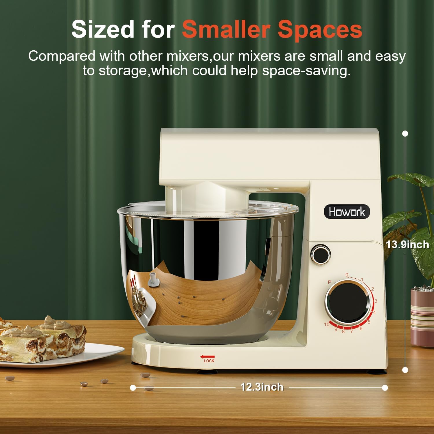HOWORK Stand Mixer,10+p Speeds With 5.5QT Stainless Steel Bowl,Dough Hook, Wire Whip & Beater,for Most Home Cooks,Cream White
