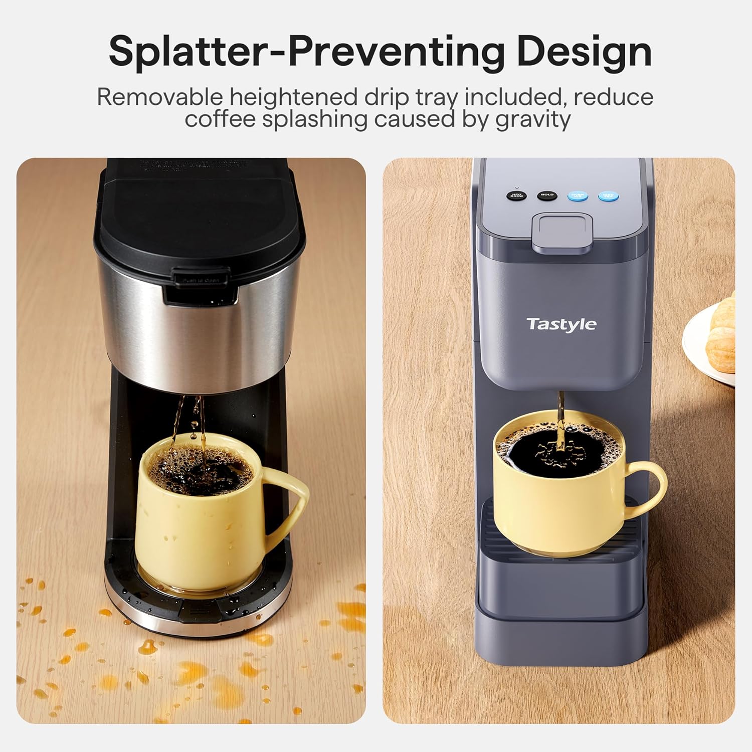 - Splatter-Prevent Design: Includes removable heightened drip tray to reduce coffee splashing when using short cups, while still fits up to 7.3'' travel mug if all drip trays are removed