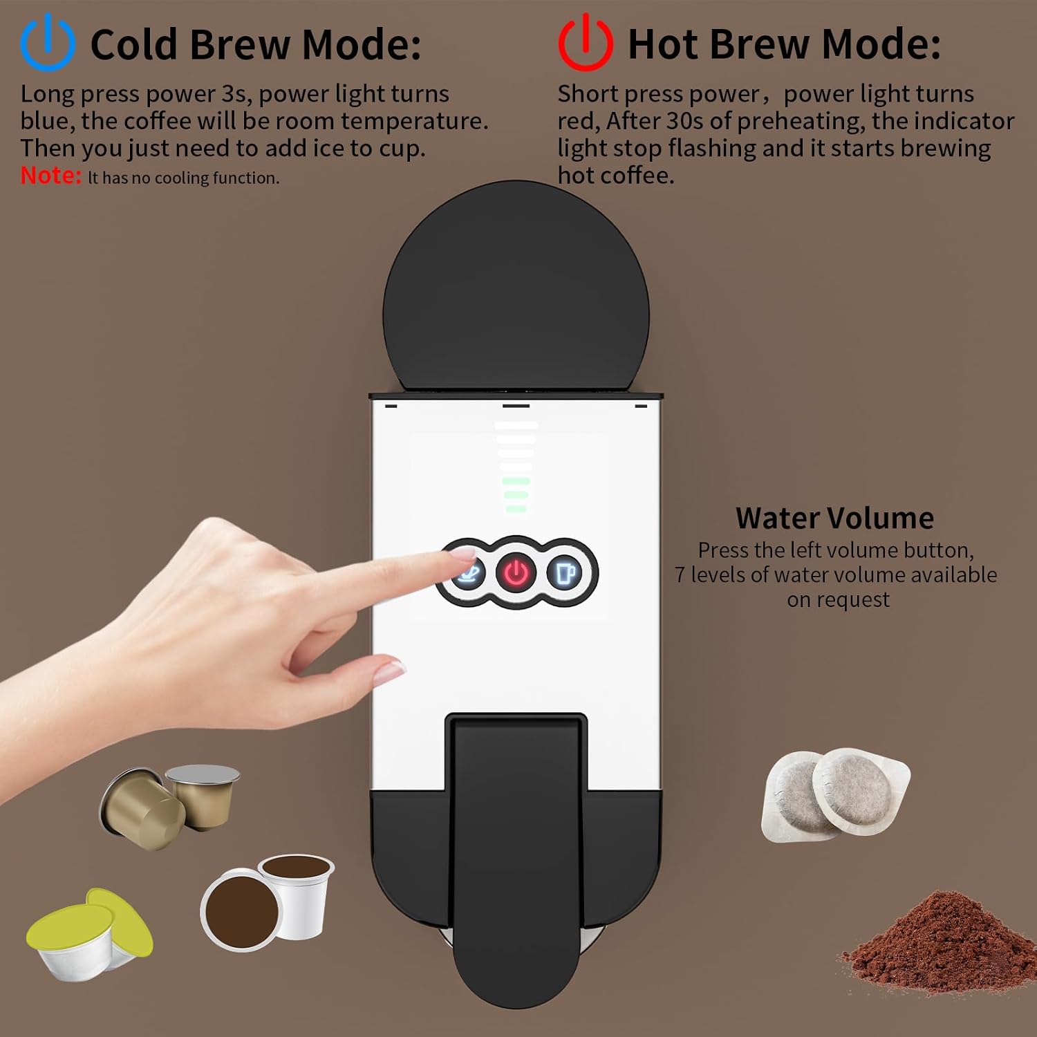 KOTLIE 19Bar Single Serve Coffee Maker, 5in1 Espresso Machine for Keu* kcup Capsules/Nespresso Original/Dolce Gusto/Ground Coffee/44mm ESE, Level 7 Water volume, Hot&Cold Brew Coffee Machine