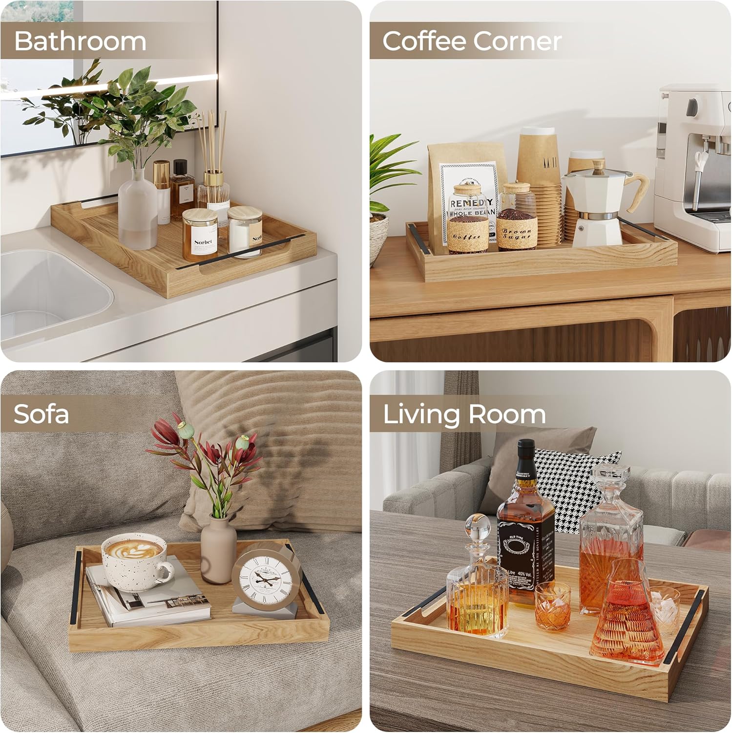 - Premium Timber & Crafting: The ottoman tray is crafted from natural ash wood, which has a beautiful natural wood grain. Perfect for use as a serving tray, ottoman tray, or decorative tray for your coffee table. Our stringent manufacturing standards guarantee a well-crafted, robust wood serving tray that will endure for years without chipping