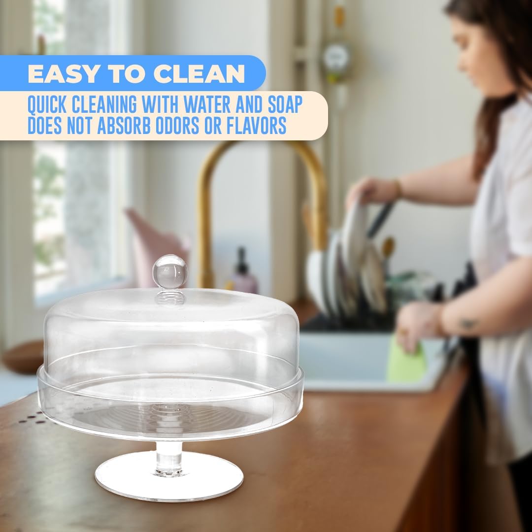 Acrylic Cake Stand with Lid โ Multifunctional Cake Holder with Cover, Covered Pie Plate with Lid, Elegant Cake Stand with Dome Lid, Panera de Vidrio Cristal para Mesa - 8.07 in ร 9.65 in