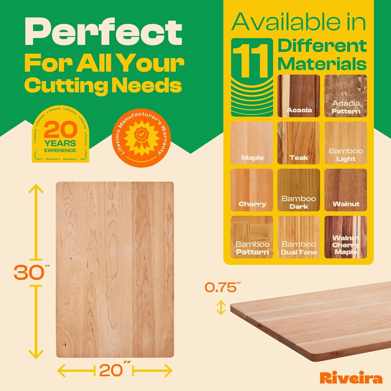 - Premium Crafted Cherry — Take a detour from traditional kitchen aesthetics with this cherry wood board crafted from 100% natural cherry. Beyond being an unconventional and eco-friendly choice, the chopping board wood proudly showcases the environment friendly and organic cherry. This wood cutting boards for kitchen counter adds an unexpected touch of confidence and style to your once-orderly culinary space. Riviera's wooden chopping boards for kitchen will be there for many years to come.