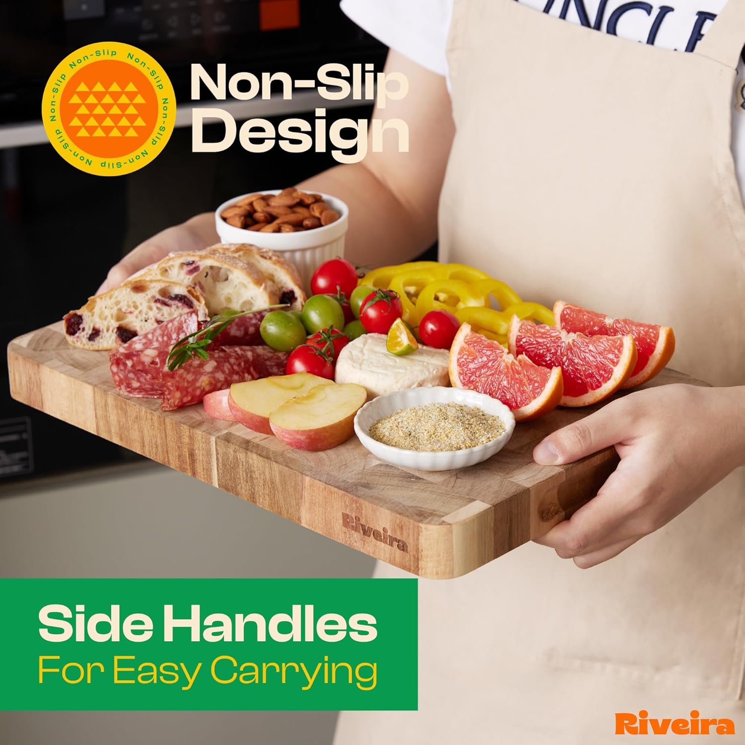 - Handle Everything with Confidence — The built-in handle holds of the acacia charcuterie boards large are designed for handling everything with confidence and easy maneuvering. Pre-oiled and ready for immediate bewilderment, this charcuterie boards extra large is not just convenient for the kitchen mess but has a unique design to maintain, ensuring a performance that is both comfortable and clean for charcuterie board large extra. Riviera big wooden cutting board will be perfect in your kitchen.