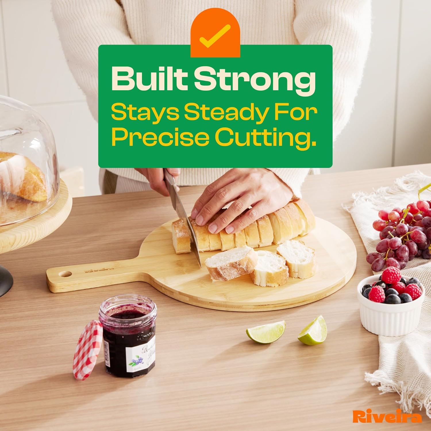 - Premium Crafted bamboo — Take a detour from traditional kitchen aesthetics with this two tone bamboo wood board crafted from 100% natural bamboo. Beyond being an unconventional and eco-friendly choice, the chopping board wood proudly showcases the environment friendly and organic bamboo. This wood cutting boards for kitchen counter adds unexpected touch of confidence and style to your once-orderly culinary space. Riviera's wooden chopping boards for kitchen will be there for many years to come.