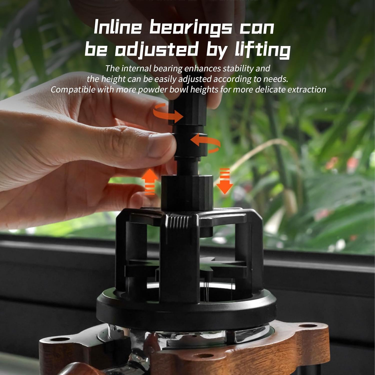 • 【Smooth Rotation and Height Adjustable】Embedded bearing structure greatly reduces rotational resistance. The distributing height is adjustable, compatible with more filter basket and portafilter for more delicate extraction.