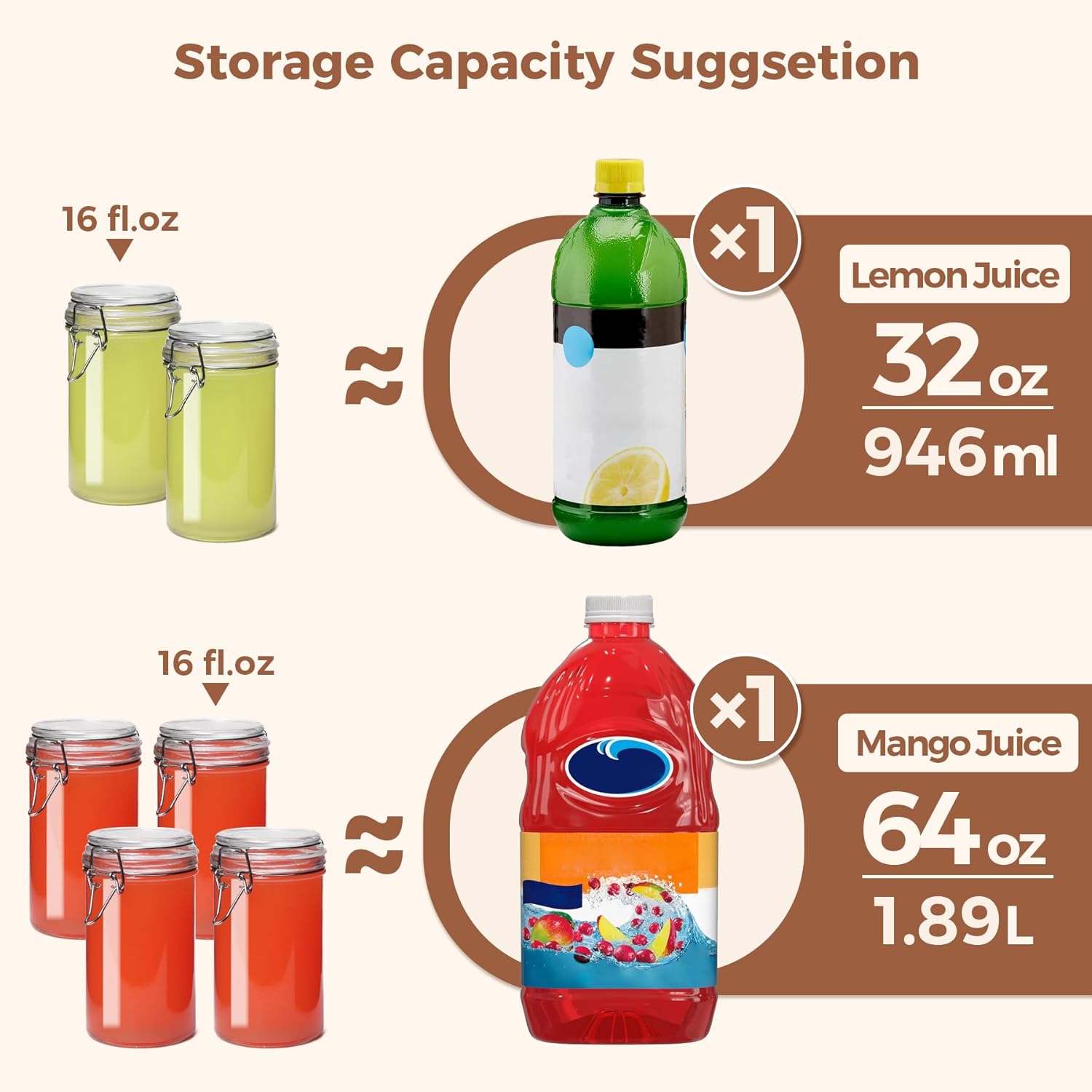 - Versatile Glass Canisters: The airtight canister ideal for pickling dill cucumbers, or making vanilla extract, fresh juices and chutneys. Additionally, these 16 oz glass jars with lids can also be used as jam jars, juice jars, sugar canisters or candy jar