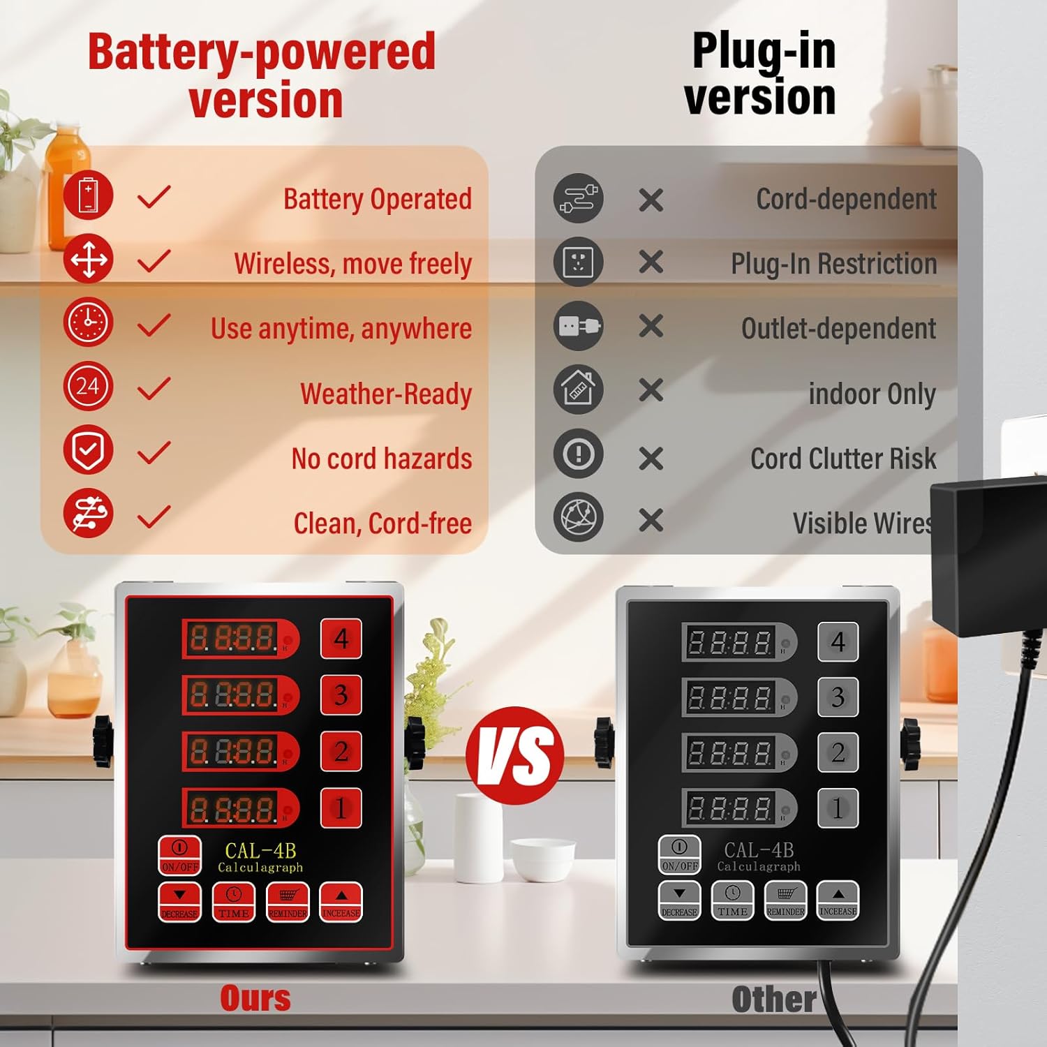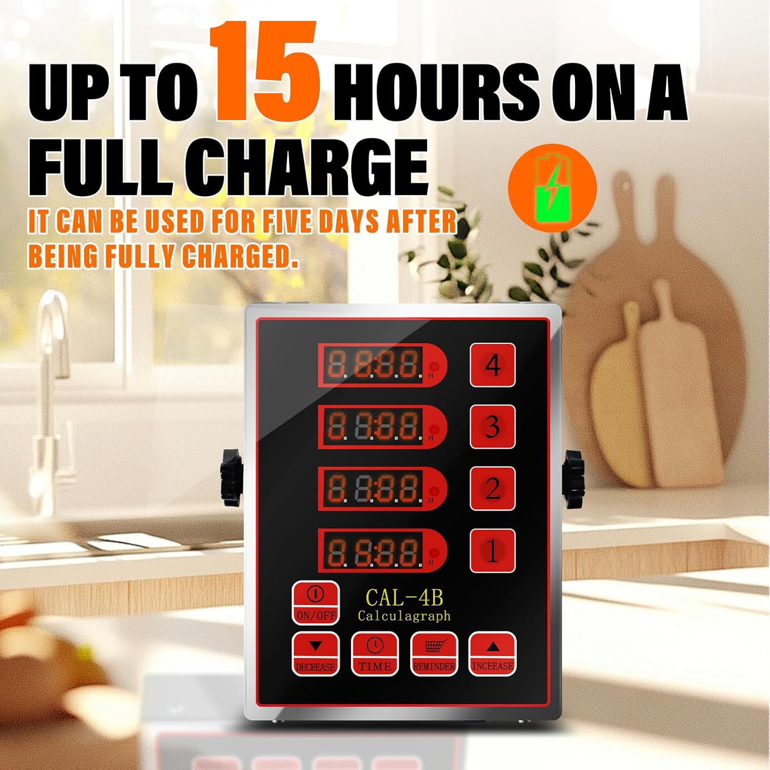 - Cordless & Crystal-Clear LED Display: Ditch tangled cords with this cordless digital timer! A single charge delivers 15 hours of cordless use, ideal for outdoor BBQs or mobile food trucks. The ultra-bright LED screen ensures instant readability, even in low-light conditions, so you can track time effortlessly.