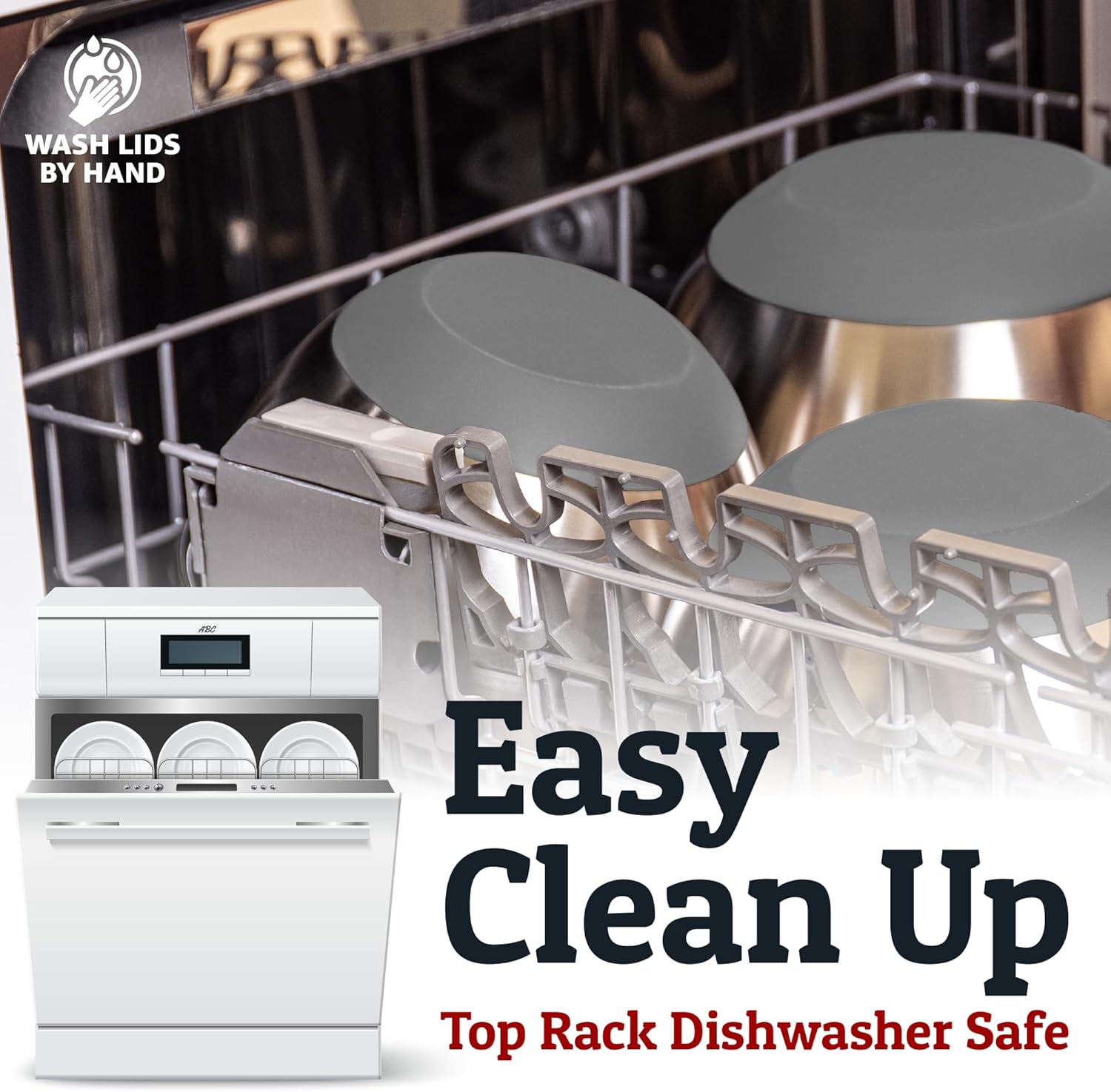 - Space-Saving Nesting Design with Matching Lids - This 6-piece set of large nesting bowls stacks neatly inside one another, keeping your kitchen cabinets organized and clutter-free. Each stainless steel bowl has its own fitted lid, so nothing goes missing. Ideal for small kitchens, apartment living, or anyone who values a tidy and functional cooking space.
