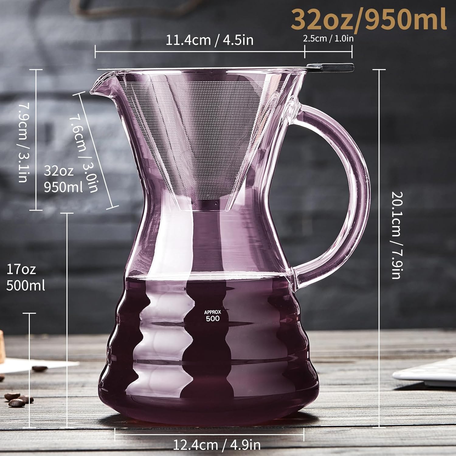 - Ergonomic Design for Comfort: This Pour Over Coffee Maker features an easy-grip handle and anti-drip spout, ensuring safe handling and precise pouring without spills or burns, enhancing your enjoyment with every pour-over coffee session