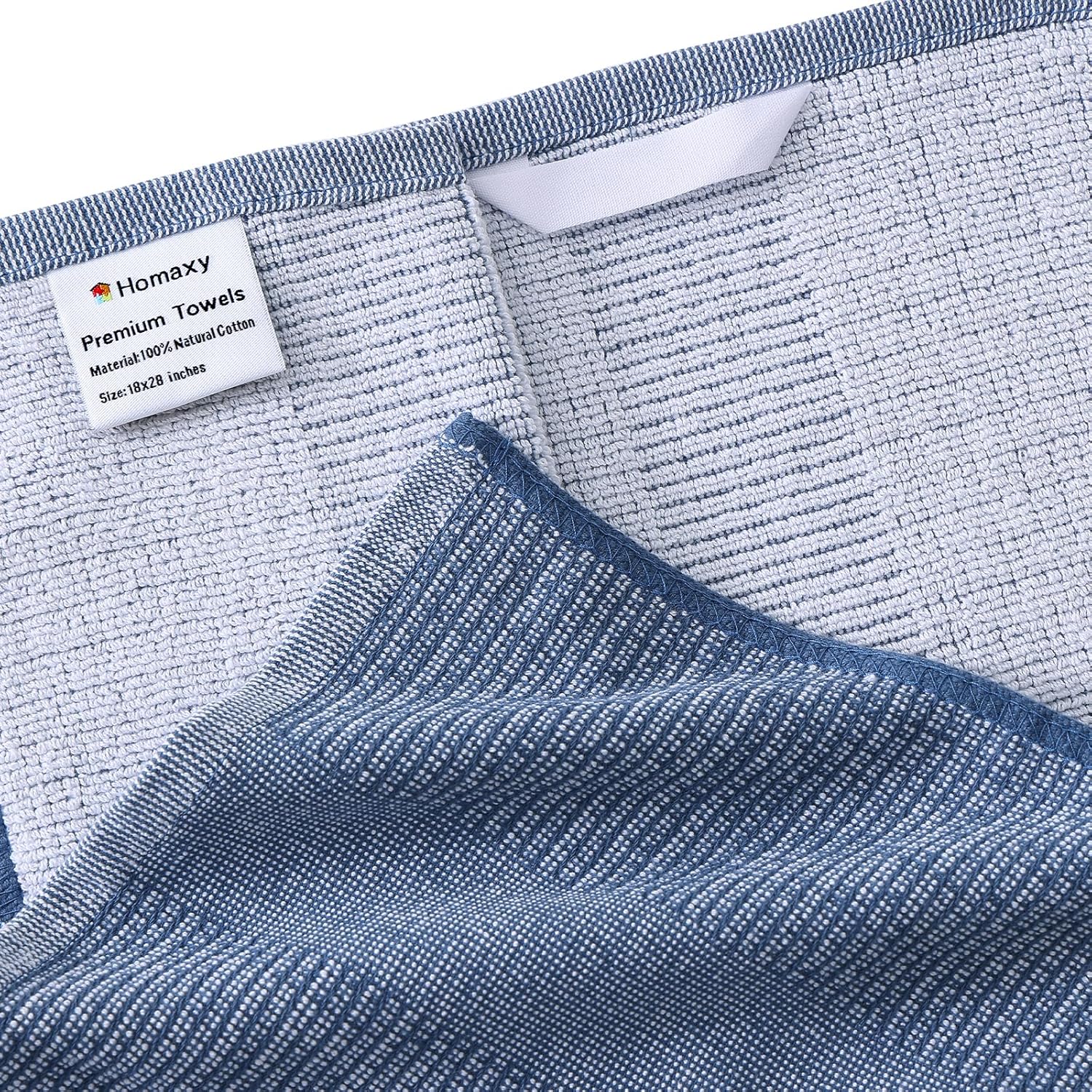 Homaxy Premium Kitchen Towels(18”x 28”, 8 Pack), Large Cotton Kitchen Hand Towels, Flat and Terry Dish Towels, 380 GSM Highly Absorbent Tea Towel Set with Hanging Loop, Navy Blue