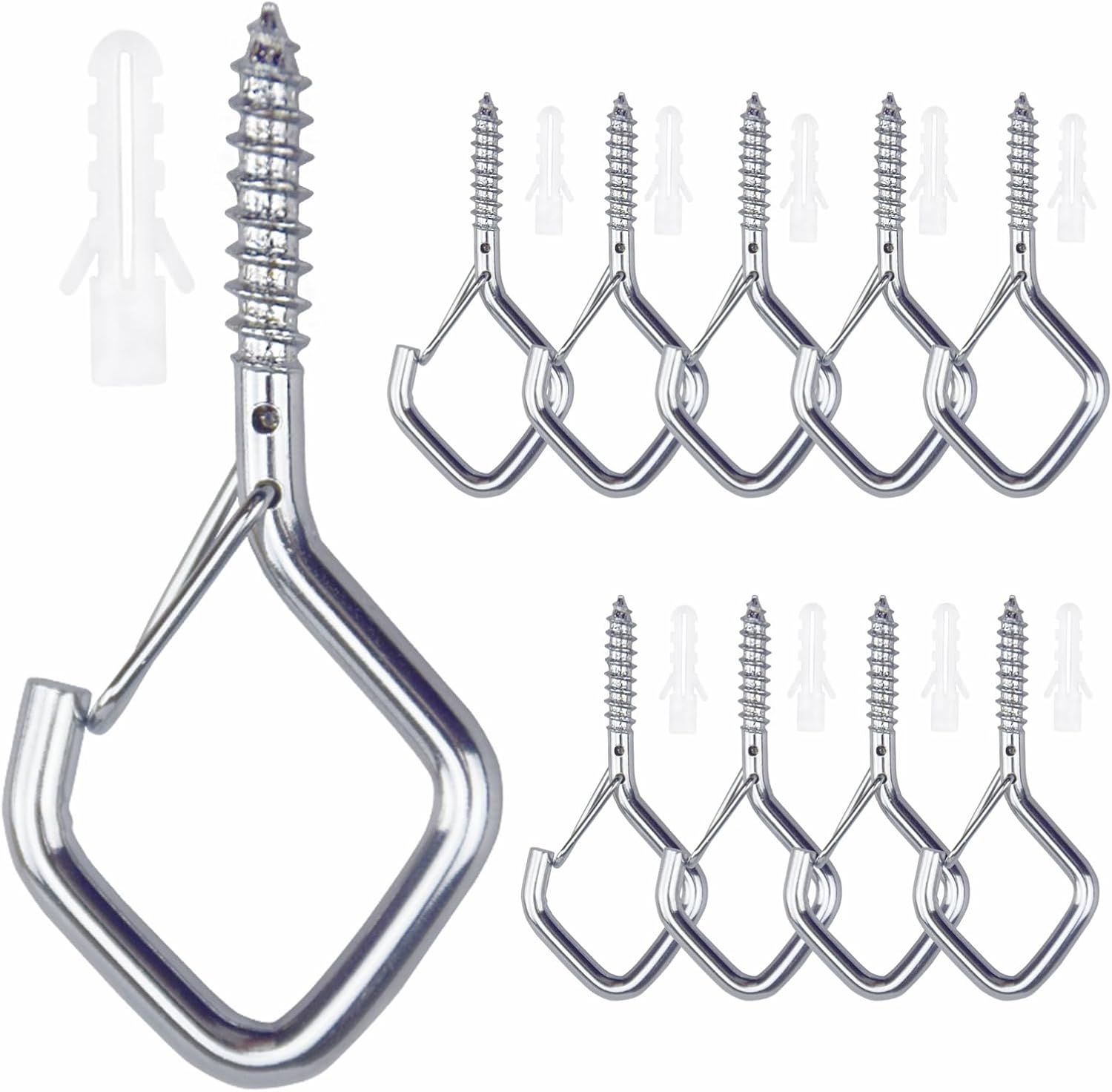 10 PCS Eye Screw Hooks for Hanging Heavy Duty with Safety Buckle.Metal Ceiling Hooks for Hanging Plants,Cup,Wind Chime,Bird Feeders,christmas String Lights at Indoor&Outdoor,2.36 Inch(No Drill Bit)