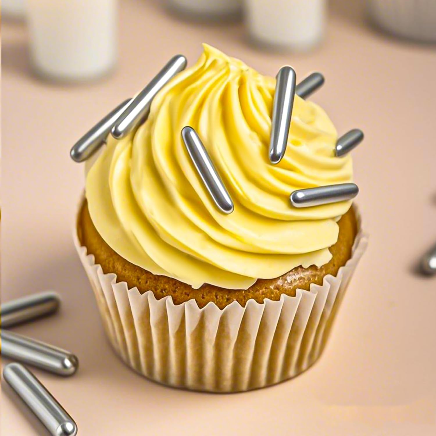 - 【Perfect Sprinkles for Cake Decorations】: These silver rod sprinkles allow you to create beautiful and unique decorations with added texture. Perfect for cakes, cupcakes, cookies, ice cream, and more. Each bottle of sprinkles sugar is enough to decorate 3-5 cupcakes or a 3-inch cake, offering a great value. Affordable price, premium silver rod sprinkles for baking!