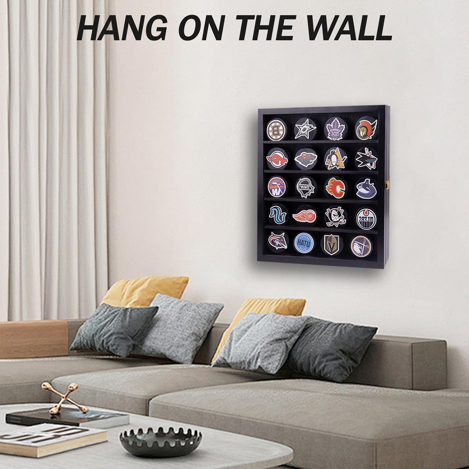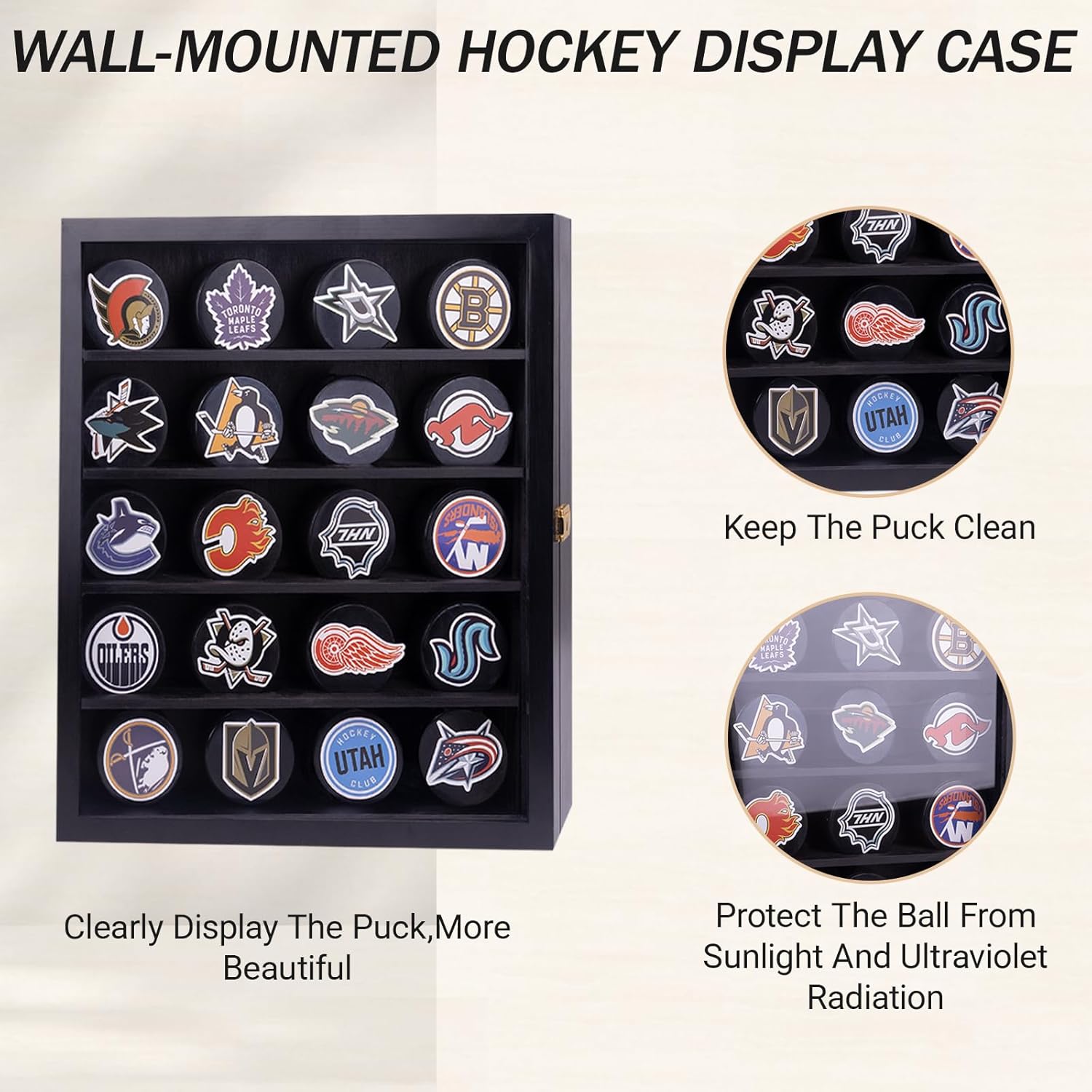 - 【UNIQUE DESIGN】: The transparent acrylic door is used in front of the ice hockey display cabinet,which is not only beautiful,but also can block dust,and has a good protection effect.At the same time,you can clearly show your hockey.
