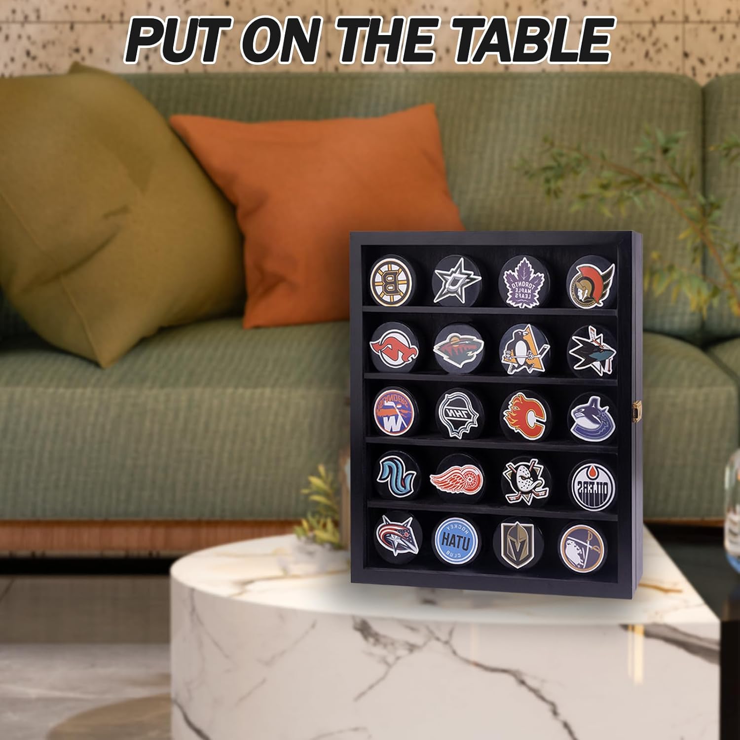 - 【HOCKEY PUCK DISPLAY CASE】: The hockey puck display case can display 20 hockey pucks.The size is 15.4*3.1*17.7inch.
