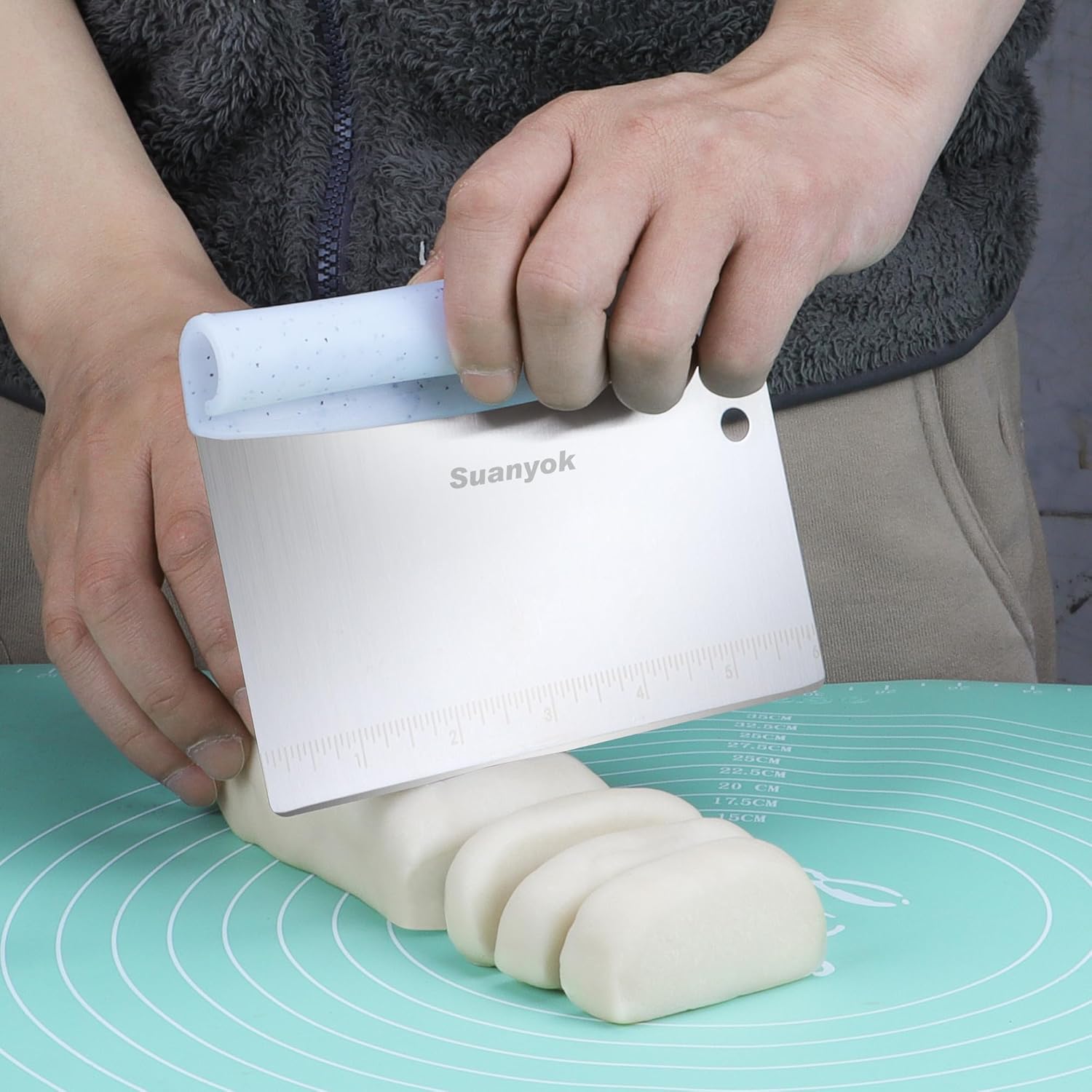 - STAINLESS STEEL BENCH SCRAPER: equipped with 430 stainless steel safety bevels blades specially designed for dough.With the clearly engraved measurement conversion table, you can quickly reference and mark up to 6 inches at any time- Precise dough cutting and dispensing is easier than ever