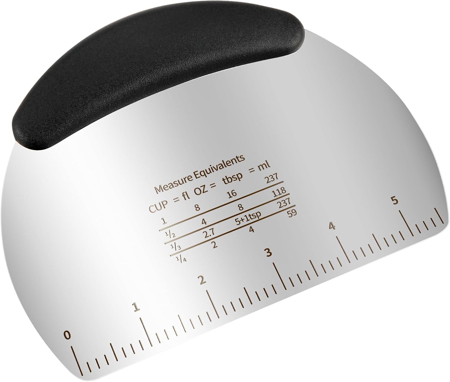 - MULTI-PURPOSE DESIGN: Stainless steel dough cutter with measurement markings for inches and centimeters, plus convenient measurement conversion chart for kitchen use
