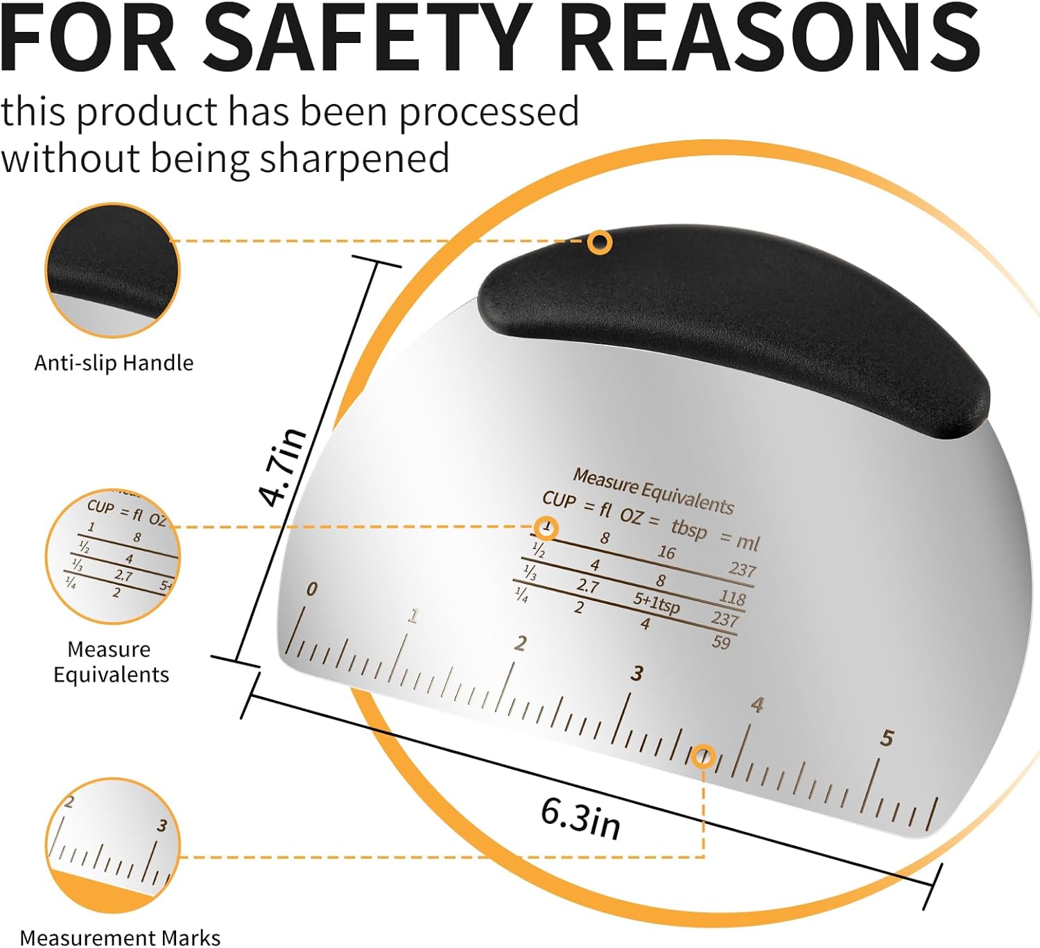 - SAFETY FEATURES: Dull-edge scraper design with unsharpened blade for safe handling while cutting and portioning dough