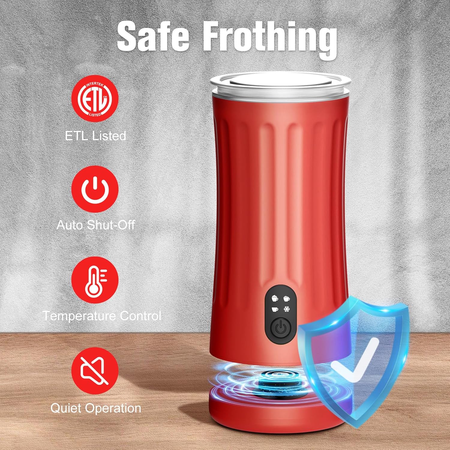 - Multifunctional 4-in-1: This milk frother and steamer can make hot milk,hot dense foam, hot air foam, or cold foam. Versatile enough for any drink you crave — enjoy café-quality beverages right at home.