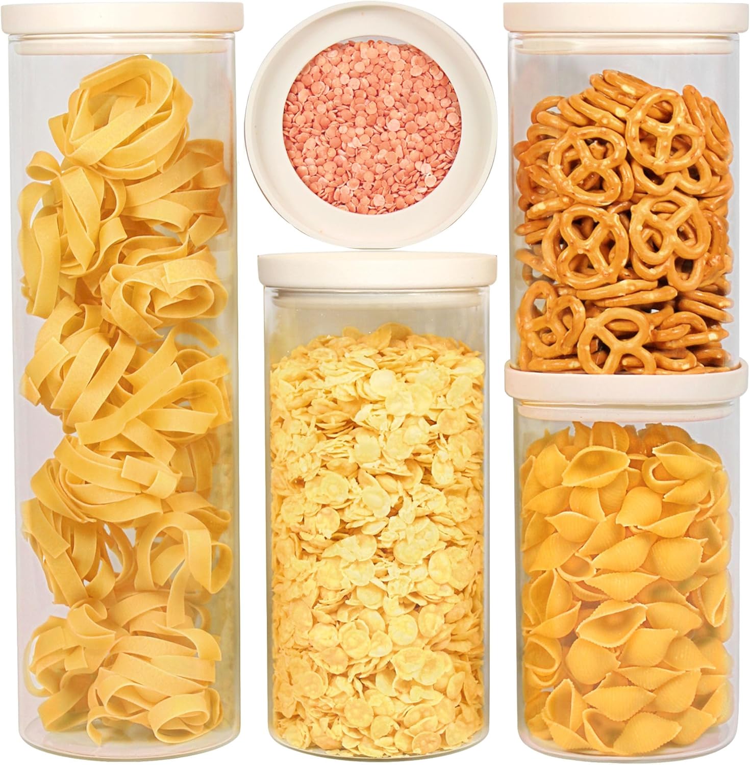 - ✅ANTI-SLIP STACKABLE LID DESIGN: All our glass lids are made with a unique stackable feature for space saving storage, the special nesting lid design makes the glass jars snuggle the lid tightly. The silicone airtight lid makes the lid seal tight, which ensures food stays dry and fresh for a much longer time. Our white glass lids jars are practical, functional, and contemporary looking anywhere you display at home or business.