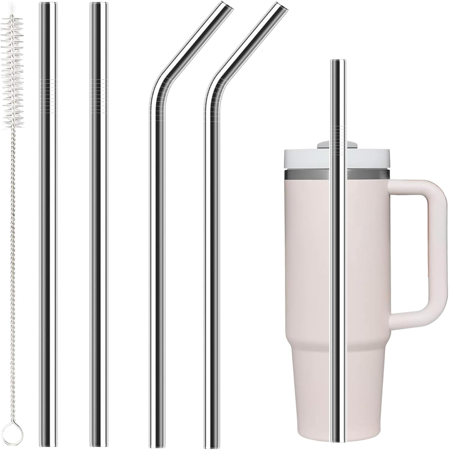- Stainless steel straw set: 2 straight + 2 curved stainless steel straws, straws 11.81 inches x 0.375 inches, with cleaning brush, compatible with Stanley cups 40oz, 30oz