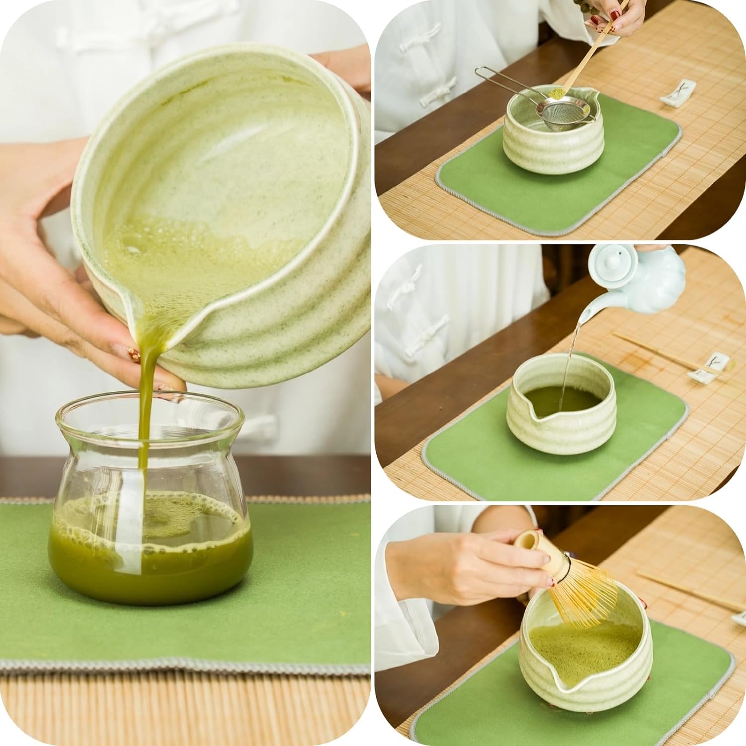 - Thoughtful & User-Friendly Design:The thick ceramic bowl provides excellent heat retention, while the eagle spout ensures precise pouring without drips. The anti-slip texture on the bowl’s side allows for a secure grip, even with wet hands. The tea mat and whisk holder not only add elegance but also protect surfaces and tools, extending their lifespan.