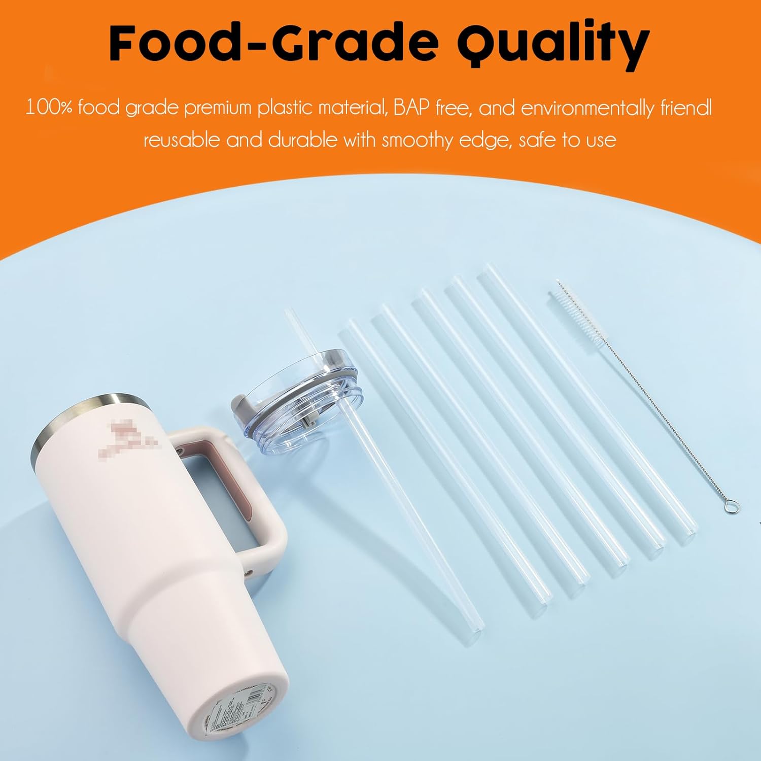 - 【Food Grade Material】Made of food grade primue plastic material, our clear straws compatible with stanley tumbler are safe and durable, BPA-free, lead-free, non-toxic, odorless, and thich enough to avoid warping, so can stand up to wear and tear.