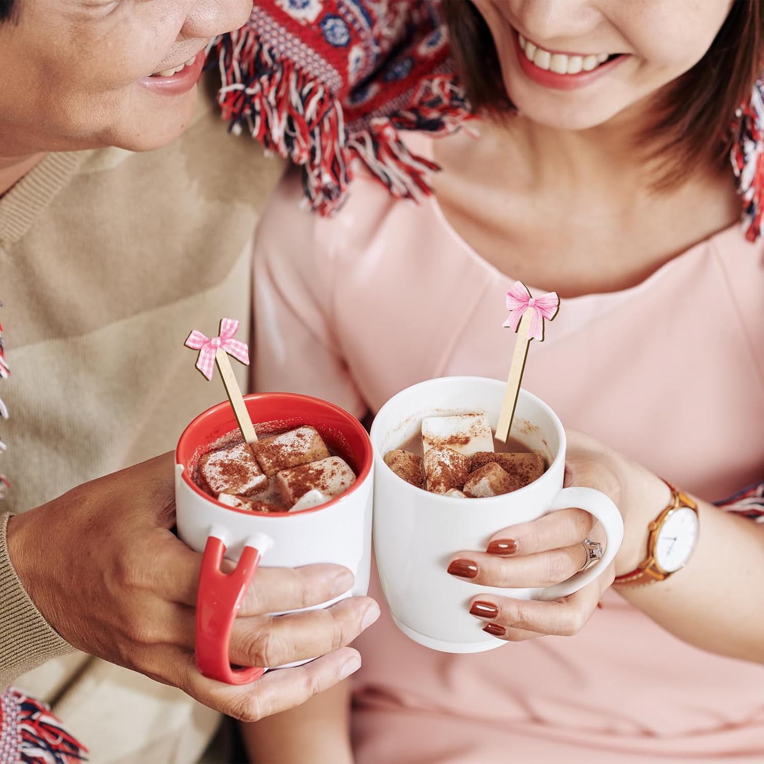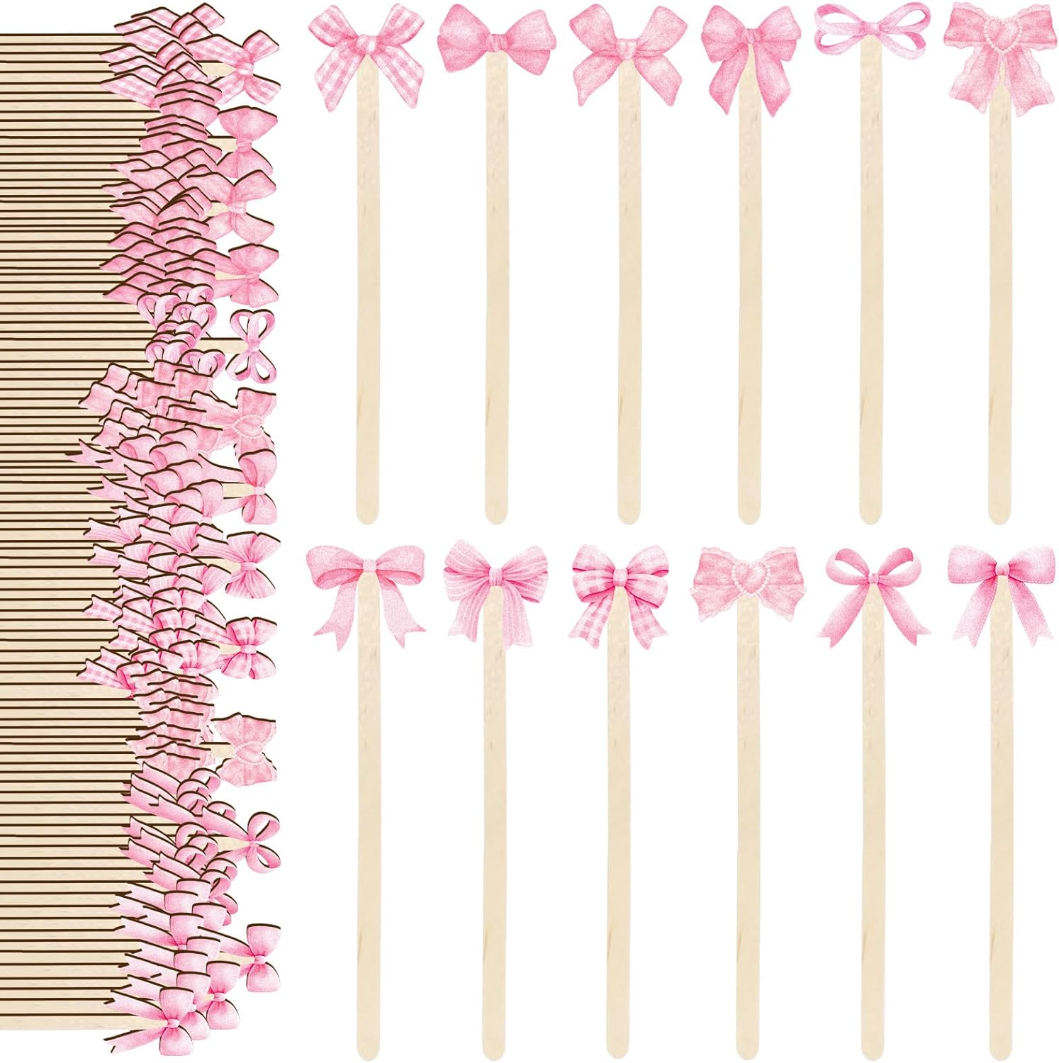 - CHIC DESIGN: The coffee stirrers are designed with watercolor pink bow patterns, come with various shapes, which look very lovely and trendy, nice addition to the table setting