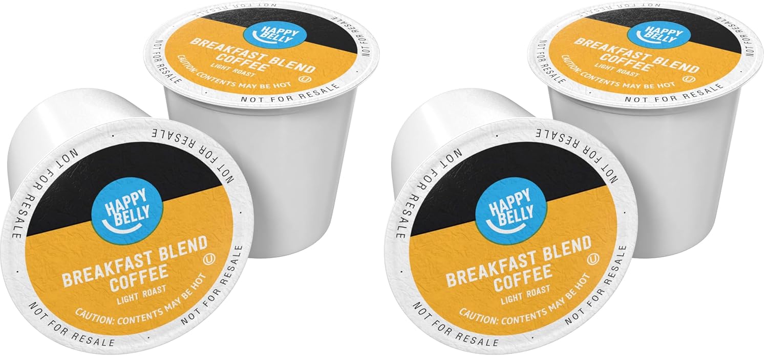 Amazon Brand - Happy Belly Light Roast Coffee Pods, Breakfast Blend, Compatible with Keurig 2.0 K-Cup Brewers, 100 Count (Pack of 2)